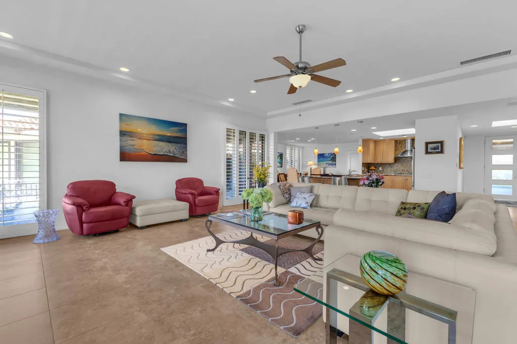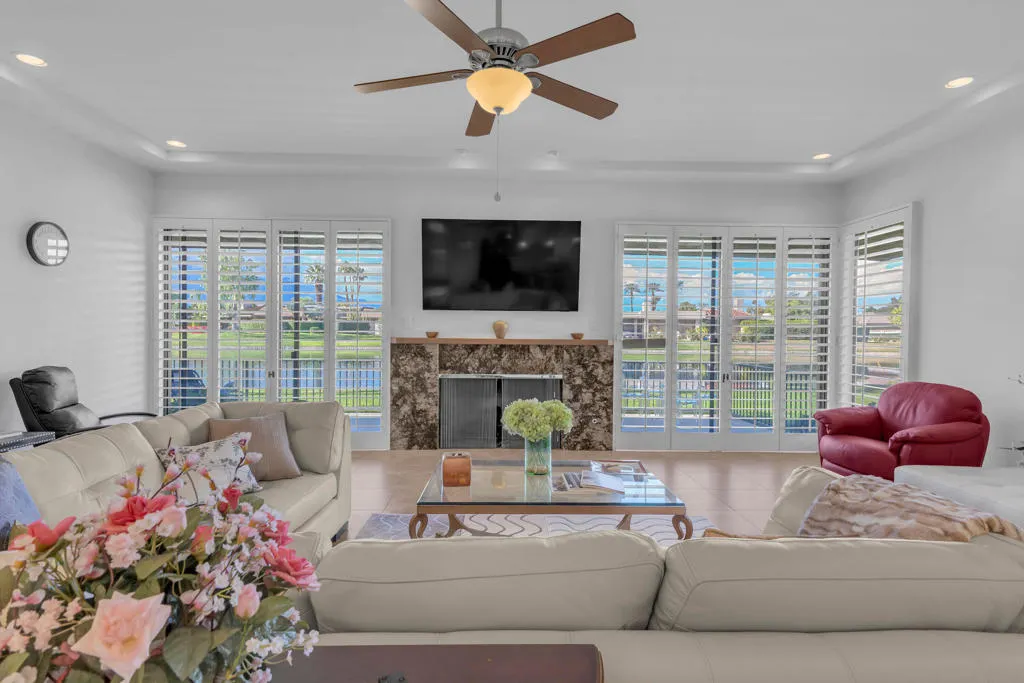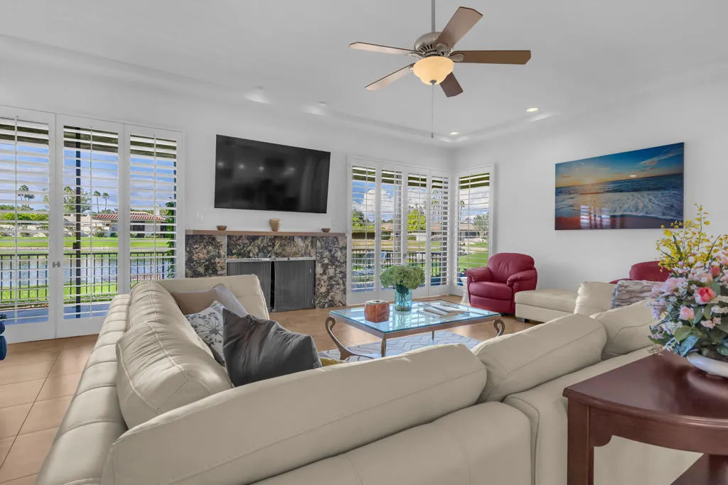 Offered annually at $6,500. Season rates $9-$9,500. This charming lakeside home in Rancho Mirage offers stunning lake views and sweeping vistas of the San Jacinto Mountains across 2,535 sq ft of well-designed living space. The spacious primary suite features a walk-in closet and oversized bathroom with separate tub and shower. A large guest bedroom, second oversized bathroom, and a generous office provide comfort and flexibility.Additional features include a two-car garage plus separate golf cart access. Located in the heart of the guard-gated Springs Country Club, residents enjoy access to an 18-hole championship golf course, clubhouse dining, fitness center, tennis and pickleball courts, pools, spas, and an active social calendar all set within beautifully landscaped grounds.