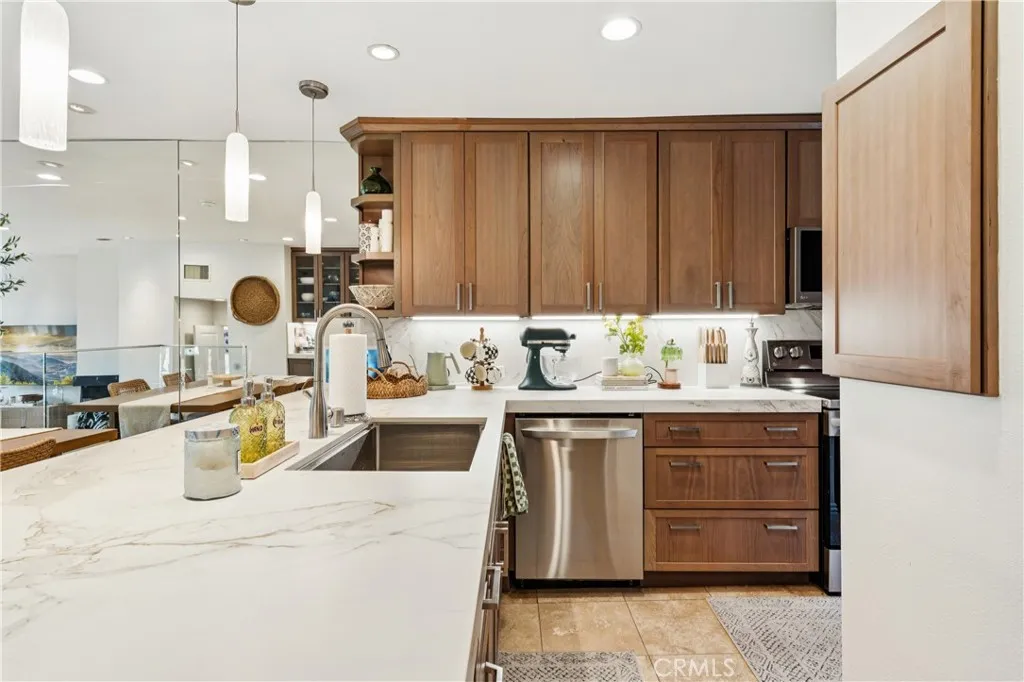 Extensively remodeled and truly turnkey, this two-bedroom, two-bath residence in Marina Pacifica offers refined coastal living in a premier marina-front setting. Thoughtfully upgraded throughout, the home showcases updated tile flooring in the entry and hallway, beautifully renovated bathrooms with contemporary vanities, upgraded plumbing fixtures, new mirrors, and modern lighting. Recessed lighting has been refreshed throughout, and a stylish new fixture enhances the main living space. Custom closet systems have been installed in both bedrooms, with hardwood flooring added in the primary closets for a tailored finish. Additional improvements include a new water heater, new washer and dryer, and custom drapery throughout — including blackout treatments in the bedrooms and living room. The spacious living area opens to an extended private patio with marina and pool views, accessible from both the living room and the primary suite, offering seamless indoor-outdoor flow. Marina Pacifica residents enjoy resort-style amenities including multiple pools, a 24-hour fitness center, clubhouse, private underground parking, 24/7 security, and controlled guest access. This residence includes two dedicated parking spaces — a valuable feature within the community. Ideally located just minutes from Belmont Shore, 2nd & PCH, Whole Foods, Gelson’s, dining, and beaches. Turnkey marina living in one of Long Beach’s most desirable waterfront communities