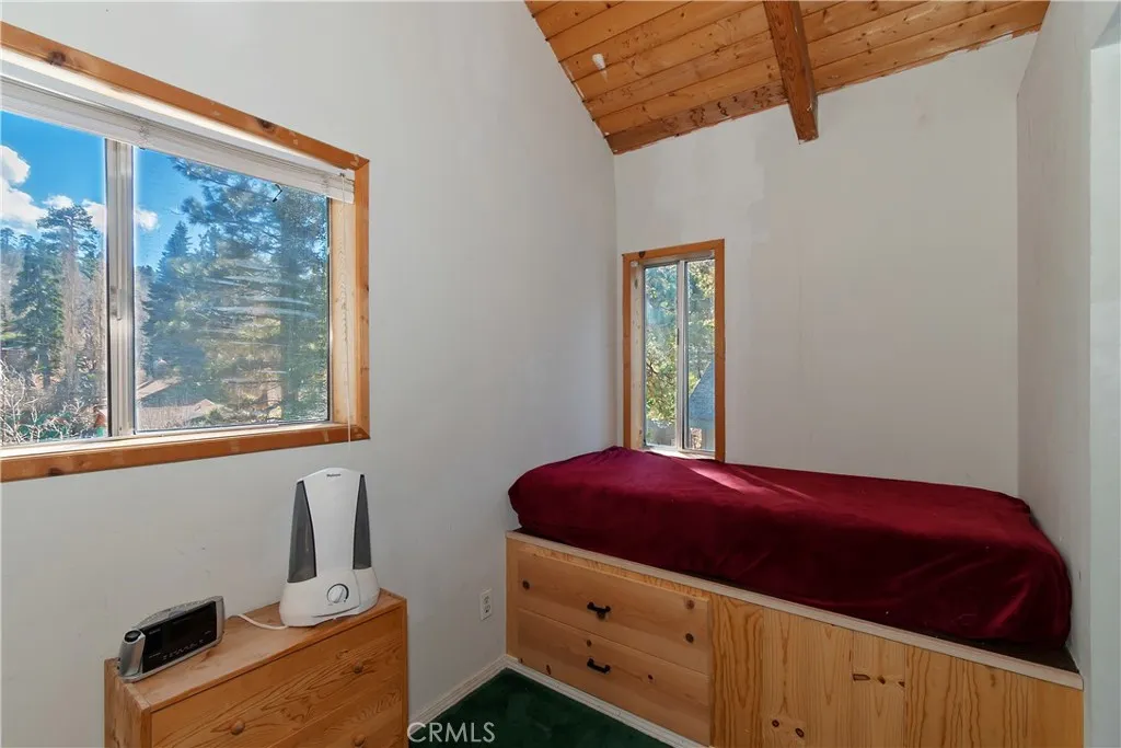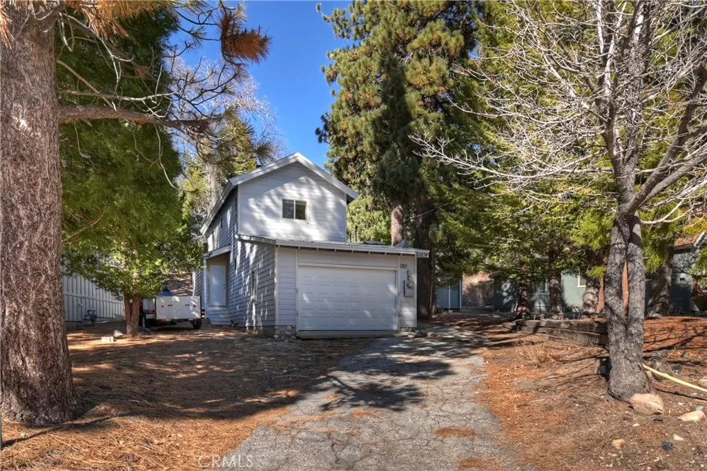 Nestled among the towering pines of Green Valley Lake, this inviting mountain home offers the perfect blend of comfort and natural beauty. From the moment you arrive, the lush forested setting sets the tone for the peaceful lifestyle that awaits inside. The main level is designed for both relaxed living and easy entertaining. The warm and welcoming living room centers around a stunning river rock fireplace, perfect for cozy evenings after a day spent exploring the surrounding wilderness. A separate family room provides additional space to spread out, while the dining area flows naturally from the well-appointed kitchen, making gatherings a breeze. Bedroom #1 and a full bathroom round out the main floor, offering flexibility for guests, a home office, or single-level living when needed. Upstairs, the primary bedroom serves as a true retreat, complete with a private balcony where you can sip your morning coffee and soak in sweeping forested views. A third bedroom and a second full bathroom complete the upper level, providing comfortable accommodations for family and visitors alike. The attached one-car garage adds convenience year-round, and with built-in storage and the laundry located inside the garage, day-to-day living is as practical as it is enjoyable. The backyard hill makes for perfect winter sledding, and the street is the first to get plowed in the winter. Whether you're searching for a full-time residence or a mountain getaway for hiking, off-roading, fishing, swimming, etc., this Green Valley Lake gem delivers the tranquility and charm that mountain living is all about.