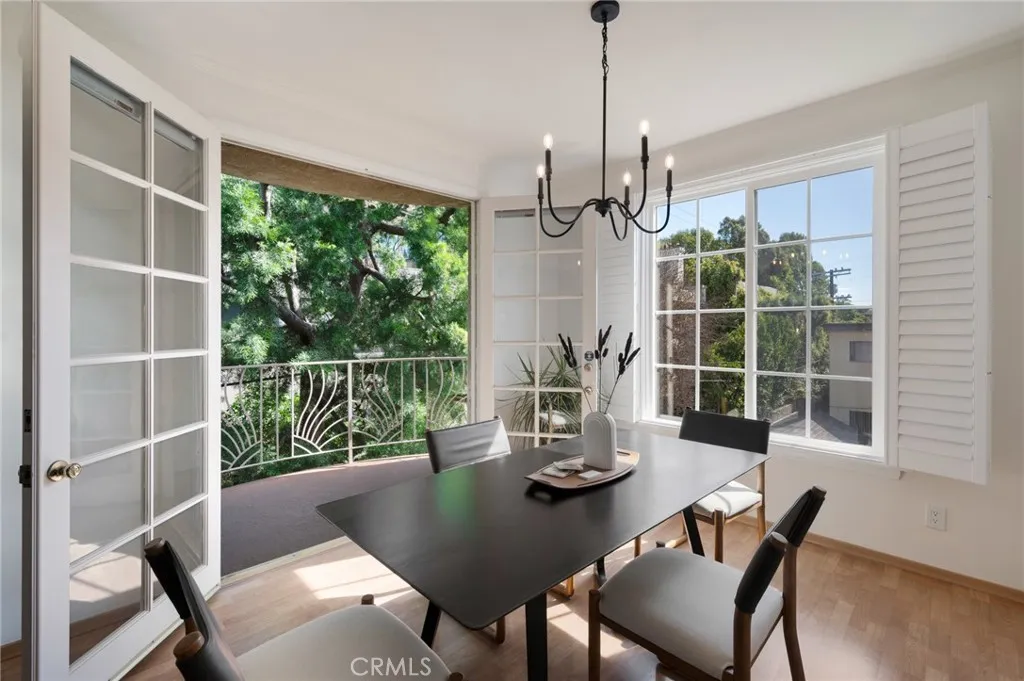 The formal dining room flows seamlessly from the kitchen to a private balcony, creating a welcoming indoor-outdoor ambiance. Designed with both functionality and connection in mind, the spacious eat-in kitchen offers abundant cabinetry, generous prep space, and ample room to gather. Whether entertaining guests or enjoying a quiet evening at home, this thoughtfully designed space balances any occasion.