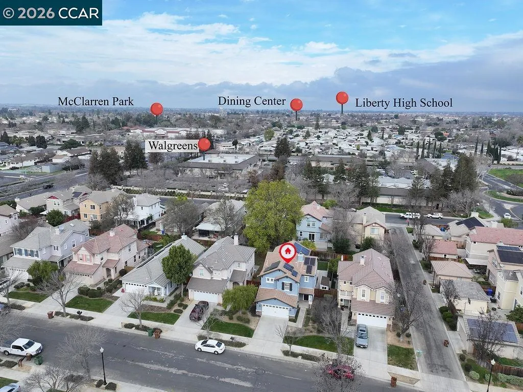 Welcome home to this beauty on a court location boasting 4 Bedrooms and 2.5 Bathrooms. Step into your large living room with high ceilings and cozy fireplace. Flex space that could be a play area or extended area of the living room that also offers a cubby under the stairs perfect for toy storage or furry friends! Enjoy the cohesive space and entertaining in the Kitchen/Dining area. The Updated Kitchen features Quartz counters, Lots of storage, Stainless Steel appliances & a breakfast bar open to the Dining Area. Upstairs you will find all the bedrooms and full bathrooms. 3 Bedrooms share the large hallway bathroom with dual sinks. Large primary with walk in closet and open bathroom. Enjoy the leased SOLAR. Spacious backyard includes newer fencing, stamped concrete patio with newer pergola and large side yard. Additional storage with the exterior shed. Brentwood schools. Enjoy walks to Walnut Park Playground and ease of access to shopping, restaurants and grocery stores.