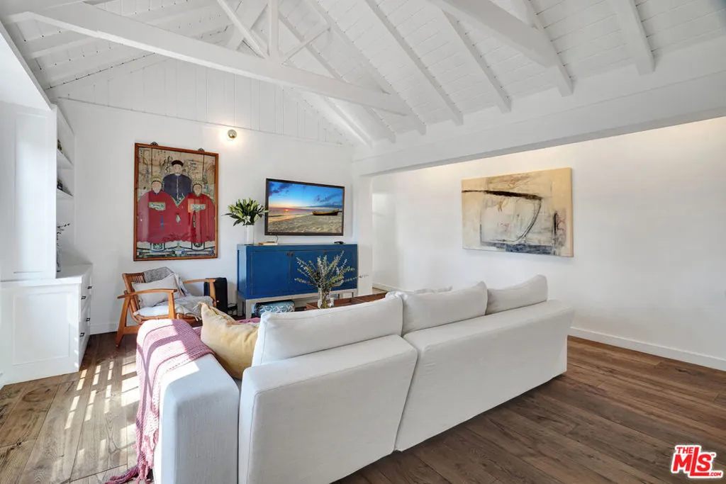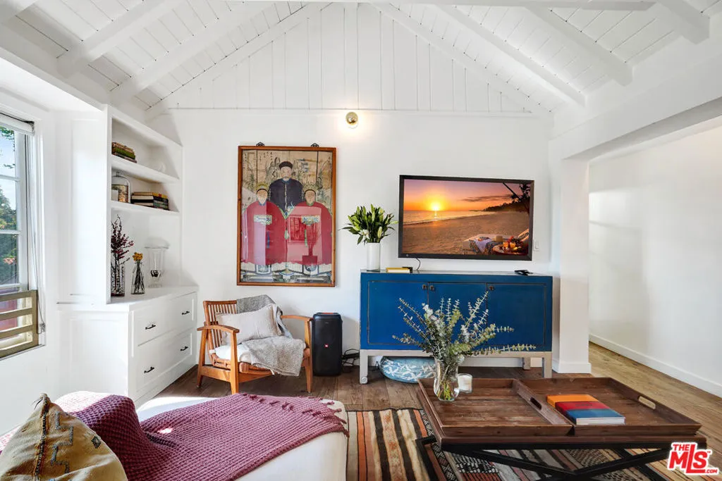 Set against sweeping canyon vistas moments from Lake Hollywood, this striking two-story guest house/ ADU residence offers a rare blend of architectural character and serene privacy. One bed one bath upstairs, downstairs has a convertible sofa bed (2nd bedroom) Dramatic exposed wood beams and soaring ceilings define the expansive living spaces, where walls of light frame picturesque hillside views. The thoughtfully curated layout features two bedrooms and one bath, complemented by an open living area that captures both warmth and scale. Natural textures, elevated ceilings, and tranquil sightlines create an atmosphere that feels both sophisticated and intimate. Privately positioned in one of Los Angeles' most coveted hillside enclaves, this residence offers a refined escape just minutes from studios, trails, and the energy of Hollywood yet worlds away in ambiance.