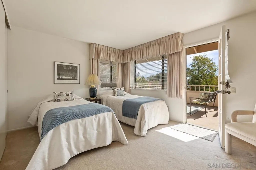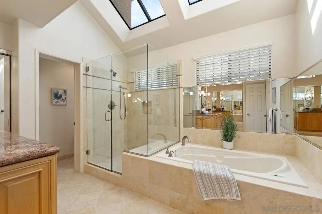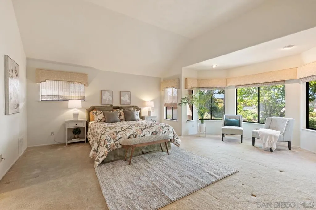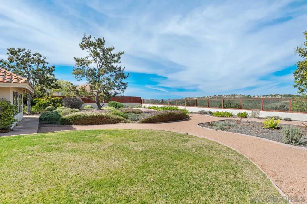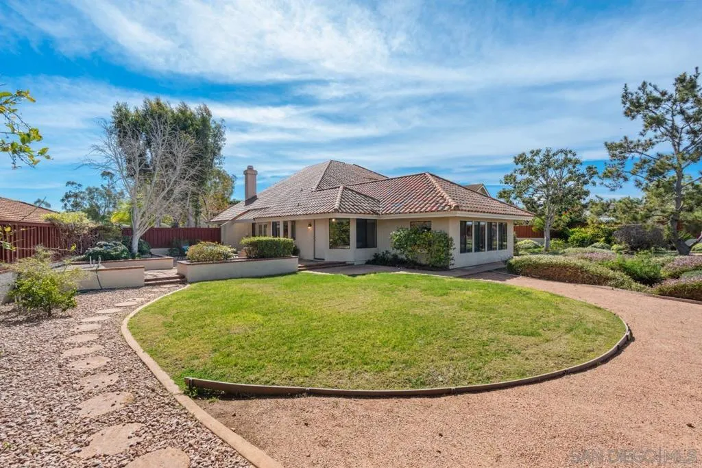 Located in the Conservatory community of Scripps Ranch, this 4-bedroom, 3-bath residence sits on an expansive, level 15,000+ sq ft lot backing to lush open space—offering endless possibilities to create your dream backyard oasis. Vaulted ceilings and an open, airy floor plan welcome you inside, where a dramatic wall of windows frames serene backyard views and fills the home with abundant natural light. The formal living room with fireplace and adjoining dining room offer French doors that open seamlessly to the outdoor patio—perfect for indoor-outdoor entertaining. The family room showcases an impressive room addition, ideal for a game room, media space, or entertaining hub. The kitchen is well-appointed with granite countertops, a center island, stainless steel appliances, maple cabinetry with abundant storage, and a pantry closet. A cozy eat-in area completes the space. The expansive primary suite overlooks the backyard and includes a cozy nook area — perfect for relaxing with a good book. The luxurious primary bath features dual vanities, two beveled mirrored wardrobes with custom built-ins, a Jacuzzi tub, separate glass-enclosed shower, tumbled travertine flooring, and two large skylights that fill the space with natural light. Upstairs you’ll find three spacious secondary bedrooms and a hallway workstation with a built-in desk, bookshelves, and ample storage. Two of the bedrooms enjoy their own private balconies. From the edge of the backyard, enjoy views of Miramar Lake and stunning sunset skies. The thoughtfully designed, low-maintenance yard features walking paths, drought-tolerant landscaping, and a variety of fruit trees. A designated area with existing gas and water lines provides the perfect opportunity to install an outdoor kitchen or BBQ area. Additional highlights include travertine flooring, vaulted ceilings, dual HVAC systems, a tankless water heater, water softener system, and a tool shed. The spacious indoor laundry room offers a utility sink and cabinetry for added convenience. The three-car garage is equipped with overhead storage cabinets and plenty of room for organization. Located in the heart of Scripps Ranch with award winning schools nearby and Lake Miramar just a few minutes away! No HOA or Mello Roos fees.