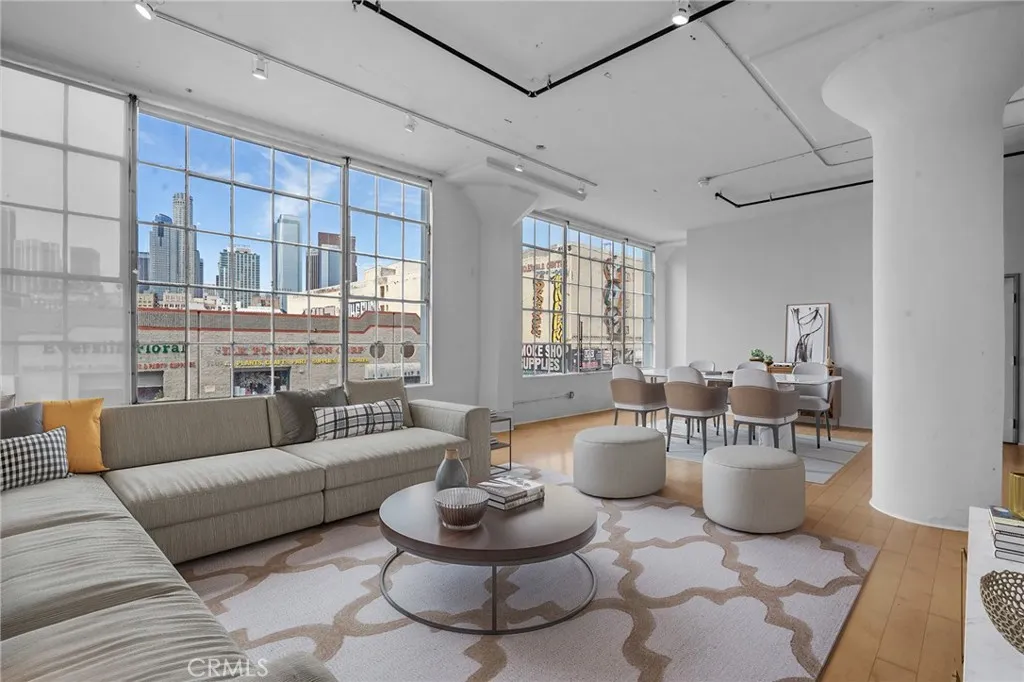 Spacious 1,000+ sq ft corner loft in the heart of Downtown Los Angeles featuring impressive skyline views and abundant natural light. This industrial-style residence offers soaring 12-foot ceilings, brand-new flooring, and an upgraded kitchen with modern finishes. The open-concept layout provides flexible living space ideal for a variety of lifestyles, with a privately positioned bedroom area for added separation. Located in a gated building with 24-hour surveillance, residents enjoy access to a pool, spa, fitness center, BBQ area, outdoor lounge, and dog run. The unit includes one covered parking space and access to approximately 25 guest parking spots—an uncommon convenience in DTLA. Situated near Gallery Row, The Broad Museum, Grand Central Market, the Arts District, and a wide selection of dining and entertainment options. Convenient access to major transit and freeways. A well-maintained unit offering urban living in one of LA’s most vibrant neighborhoods.