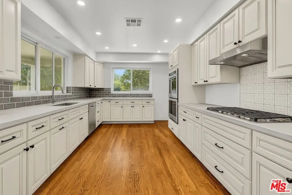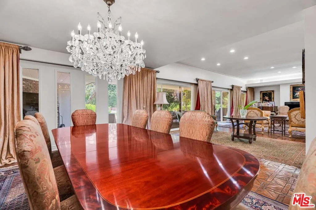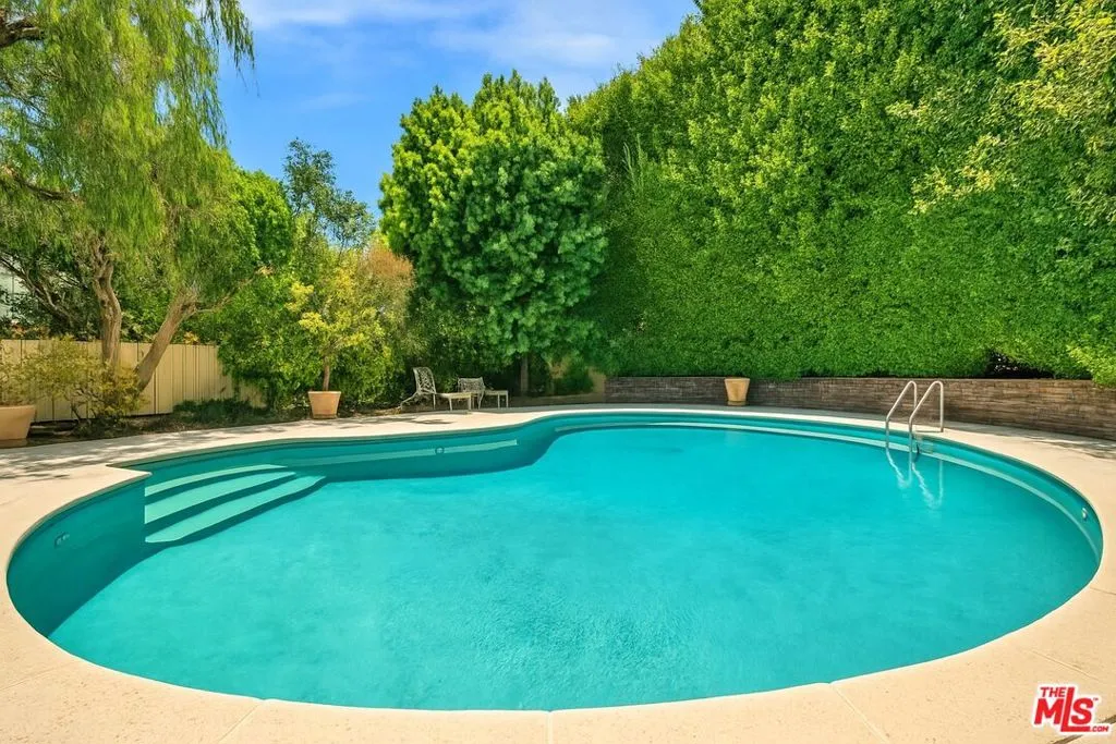 Classic Beverly Hills Estate on Prime Corner Lot in the Beverly Hills Flats. Tucked away in one of Beverly Hills' most sought-after locations, this timeless estate rests on a private corner lot, surrounded by lush greenery and mature landscaping that ensures full privacy and tranquility. Step inside to sun-filled interiors that balance classic charm with generous scale. The updated chef's kitchen boasts custom cabinetry, double ovens, a six-burner cooktop, and an abundance of counter space, flowing seamlessly into the home's expansive living and entertaining areas. Large picture windows and sliding glass doors frame verdant garden views, filling each room with natural light. A grand living room provides the perfect backdrop for gatherings, complete with a chandeliered dining area and direct access to the outdoor grounds. Outdoors, the beautifully landscaped grounds center around a sparkling pool surrounded by towering hedges your own private retreat for sun-soaked afternoons and al fresco entertaining. A stately brick facade with a columned porch welcomes you home, while a sweeping driveway framed by manicured gardens sets a distinguished tone from the moment you arrive. This Beverly Hills gem offers a rare blend of history, privacy, and light in a location that's simply unmatched.