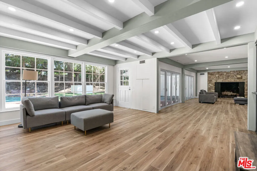 FURNISHED/UNFURNISHED. FLEXIBLE TERMS. BEAUTIFULLY REMODELED 2026! 1/2 ACRE LOT. (6 BED/8 BATH). MAIN LEVEL - 4 BEDROOMS-GRAND LIVING SPACES. SECOND LEVEL - 2ND LIVING ROOM, LIBRARY/OFFICE, 2 BEDROOMS, PLUS STORAGE. Set on one of the most prestigious streets of Beverly Hills Flats , this is a rare and exciting opportunity not to be missed. The floor plan is perfect - with all living and family rooms connected and accessible to the kitchen and breakfast area AND a formal dining room. Seamless flow throughout. Architecturally designed by the renowned Gerard Colcord. Outside, you'll discover a tranquil backyard with a pool, spa, lush landscaping. Completely secluded, private and quiet. DRIVEWAY PARKING FOR 5 CARS, PLUS A 2 CAR GARAGE.