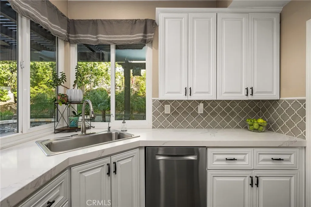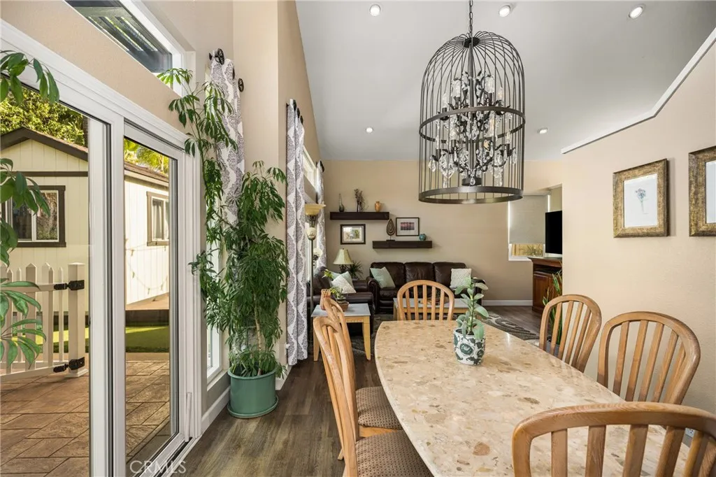 Come and check out this gorgeous home on a quiet street in the desirable Bryant Ranch area of Yorba Linda. This home is a must see for anyone looking to move into this sought after neighborhood. With an open floor plan boasting an abundance of windows and natural light, you walk in feeling at home. The 2203 sq ft., featuring 4 bedrooms and 3 baths, plus a fully finished 120 sq. ft. detached structure with AC that makes a great office or craft room. The 3-car garage also has ample storage space above and there is RV parking along the side with a sewage disposal. This home has been updated throughout with many great designer finishes. Waterproof vinyl plank flooring throughout. The beautifully updated kitchen has 10' ceilings, a large island that is great for entertaining, and white quartz countertops with thick countertop edges. The bathrooms have been updated with quartz and granite countertops. The recessed LED lighting comes equipped with smart color changing LEDs in some areas. There are also vaulted ceilings in the living room, dining room, and primary bedroom. The home offers a downstairs bedroom and bath. The spacious primary bedroom features a sitting area, large walk-in closet, double sinks, and separate tub and walk-in shower. There are also dual pane energy efficient vinyl frame windows throughout the entire house. There is a newer HVAC unit, a whole-house water softener system, and a newer water heater. This gorgeous backyard features stamped concrete, a large patio cover with ceiling fans, beautiful hardscape with stacked stone, artificial turf with putting green, above ground spa, fire pit, and a built-in BBQ with bar seating. The neighborhood also features Excellent Award-Winning Schools and is freeway close!