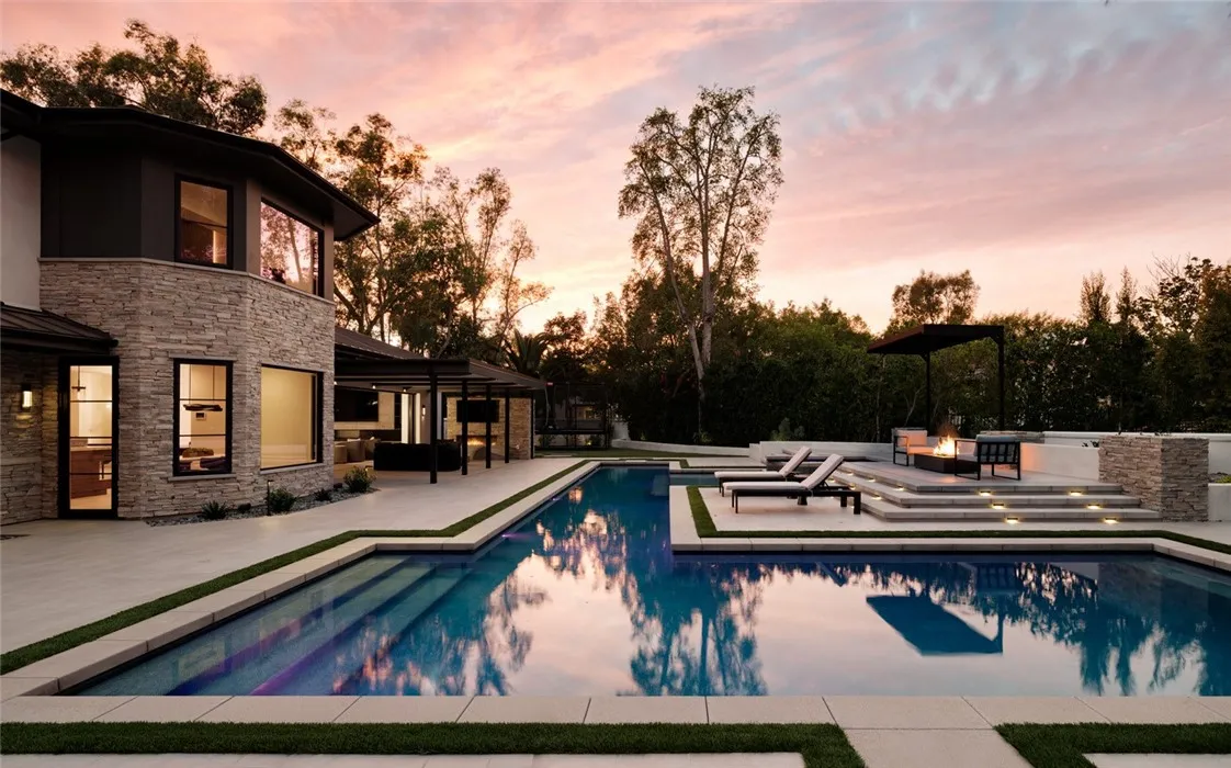 Situated on a premier corner parcel in the coveted community of Nellie Gail Ranch, this newly rebuilt estate blends architectural scale with refined livability. A private roundabout driveway sets a distinguished arrival, leading to a 9-foot pivot entry framed in illuminated stone. Inside, a soaring two-story foyer introduces expansive open-concept living spaces designed for both elevated entertaining and everyday comfort.The chef’s kitchen features a Miele appliance package with an 8-burner range and Sub-Zero refrigeration, complemented by a well-appointed butler’s kitchen with secondary Sub-Zero refrigerator and dishwasher, ideal for hosting at scale. The main level also includes a private office, a guest suite, a glass-enclosed wine room, and a bonus lounge with wet bar. Upstairs offers four bedrooms, highlighted by an oversized primary suite with volume, privacy, and retreat-like comfort. Automated pocketing glass doors in the living room fully retract creating seamless indoor-outdoor living. Set on an approximate 24,000 square feet lot, the grounds offer a resort-style pool, expansive lawn, built-in outdoor kitchen, dedicated exterior bath, and private sauna. The residence is fully integrated with Savant home automation, including whole-home audio and motorized pocketing shades for effortless control throughout. Secluded within Nellie Gail, yet moments from the 73 and the best of South Orange County.