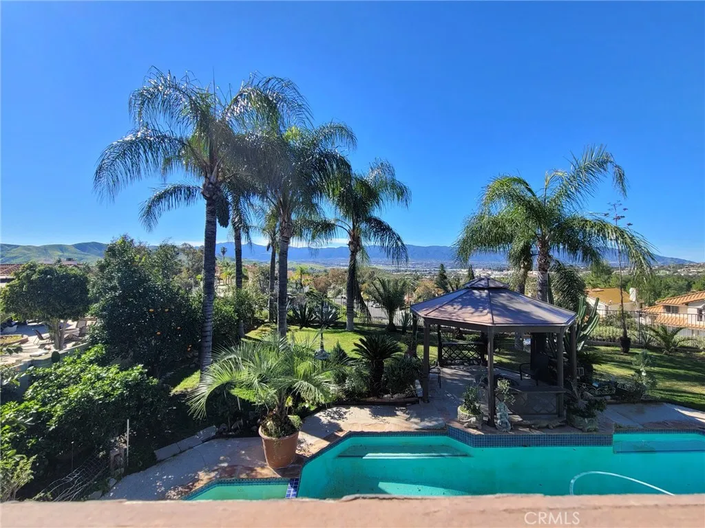 Stunning Corona Hills home with breathtaking panoramic views of hills, mountains, and city lights. This beautifully maintained property features a private backyard retreat with pool, spa, gazebo, fire pit, and an expansive lot with mature fruit trees including mango, citrus, nectarine, and grapefruit.