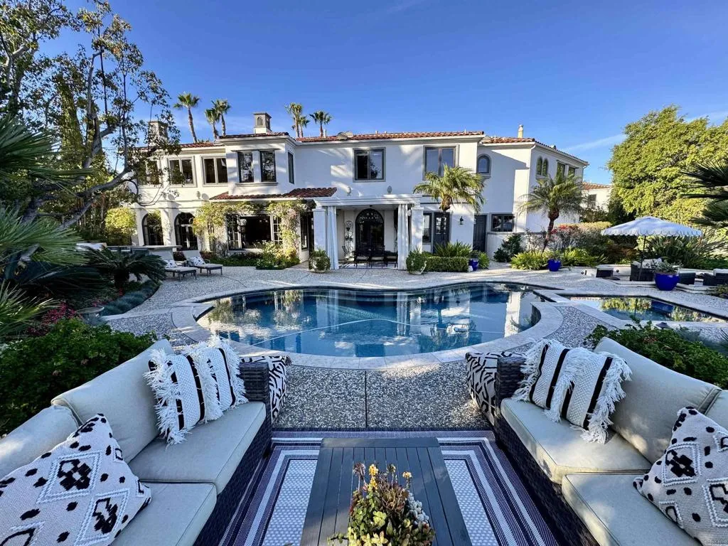 Welcome to your private sanctuary in the prestigious luxury gated community of Cielo in Rancho Santa Fe. This exquisite estate invites you to experience a perfect balance of privacy, comfort, and natural beauty, offering a serene retreat from the hustle and bustle of everyday life. Thoughtfully designed with 5 bedrooms, 5.5 baths—including two luxurious primary suites (one with its own private entrance)—and two dedicated home offices, this home is tailored to meet the needs of modern living. Whether you’re hosting loved ones, working remotely, or simply savoring quiet moments, this residence effortlessly adapts to your lifestyle. An upstairs bonus family room provides even more versatility, serving as an ideal space for movie nights, playtime, or unwinding after a busy day. Step inside, and you’ll immediately be captivated by the natural light that pours through oversized windows, framing gorgeous rolling hills and open vistas from nearly every room. The open and airy floor plan creates seamless indoor-outdoor flow, making every corner of this home feel like a peaceful getaway. Venture outside, and you’ll discover a stunning 1.5-acre outdoor paradise designed for both relaxation and entertaining. Begin your mornings with a cup of coffee on the sun-dappled loggia, where gentle breezes and birdsong and hummingbirds set the tone for the day. As the sun dips below the horizon, gather with loved ones to dine al fresco under the pergola, thoughtfully equipped with built-in heaters for year-round enjoyment. The sparkling pool beckons for refreshing dips, while the built-in BBQ and cozy fire pit set the stage for memorable evenings under the stars. Surrounded by lush, meticulously maintained landscaping, this outdoor haven feels like your own slice of paradise. With plenty of space for expansion—such as adding an ADU—the possibilities are as boundless as the views. This home is as practical as it is beautiful, featuring paid ground mount solar with surplus energy capacity for efficient living and a 3-car garage to meet all your storage needs. Nestled on a peaceful cul-de-sac, the property offers unparalleled tranquility while being part of the vibrant Cielo community. Residents enjoy access to resort-style amenities, including a gym, pickle ball and tennis courts, 2 community pools, book clubs, and lively events, all with the added benefit of no extra membership fees and no Mello-Roos taxes. Families will appreciate zoning for the top-rated R. Roger Rowe School and San Dieguito School District, ensuring access to excellent education. Beyond the community, Rancho Santa Fe offers a lifestyle like no other, blending small-town charm with proximity to world-class dining, shopping, and recreational opportunities. This is more than a home—it’s a lifestyle. A place where you can wake up to breathtaking views, enjoy the peace of nature, and create cherished memories that will last a lifetime. Don’t miss the chance to make this serene retreat your own—welcome home!