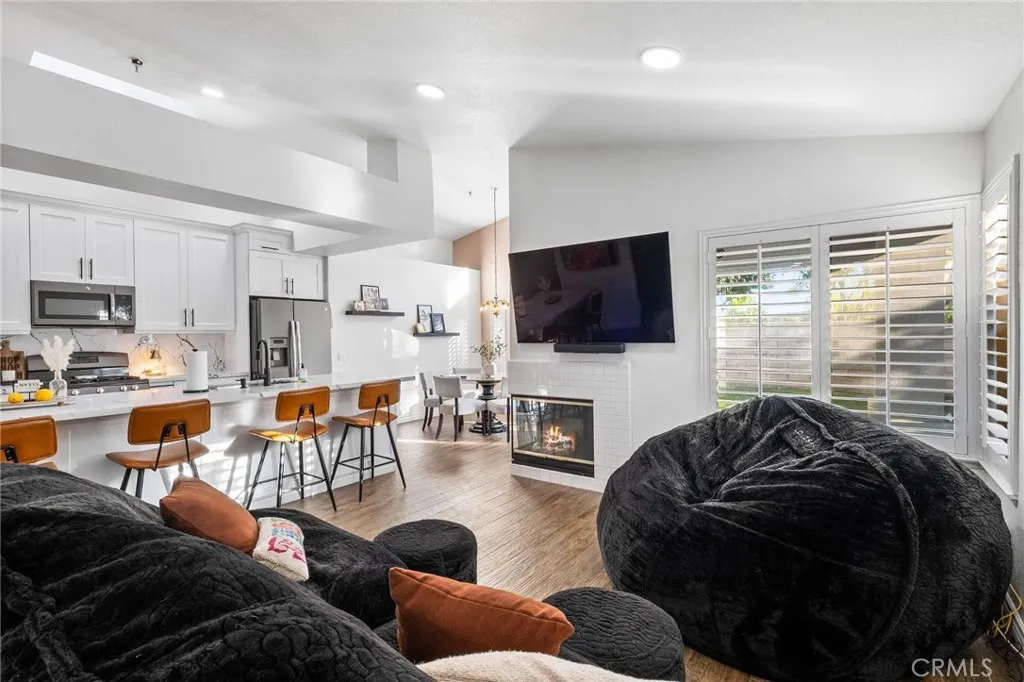 Step inside to tall ceilings that create an open and airy feel throughout. The home is loaded with upgrades, including stylish wood tile flooring and a beautifully remodeled kitchen featuring white shaker cabinets, quartz countertops with a full quartz backsplash, and upgraded appliances — including the refrigerator. The washer and dryer are also included, making this home truly move-in ready. A dedicated dining area is conveniently located just off the kitchen, perfect for everyday living and entertaining.