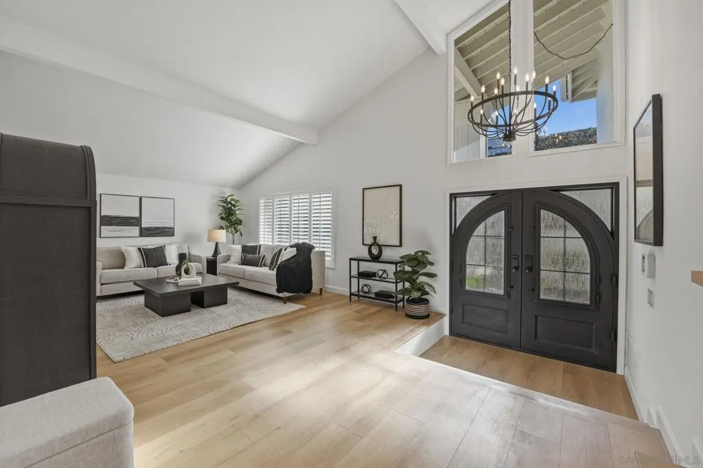 VIEWS VIEWS VIEWS! FULL HIGH-END RENOVATION just completed in 2026! Be the first to live in this stunning home since. Private, resort-like setting on a 0.24 acre lot in the heart of La Costa directly above the OMNI golf course. Nicely set back with a circular driveway and a fully enclosed entry courtyard that provides a real sense of privacy. Arched iron doors open into a well laid-out home where every inch has been professionally designed with high-grade finishes. Extra-wide plank floors lead your eye across the home, where the view can be seen from every room. The kitchen features Taj Mahal quartzite natural stone counters and Bosch appliances. The spacious living room has soaring ceilings, and a separate family room features a gorgeous herringbone fireplace. The downstairs bedroom can double as an office or den, and one of the three full bathrooms is also downstairs. The primary suite features a gigantic bathroom with a luxury shower and soaking tub, walk-in closet and a sliding door that leads to a balcony overlooking the entire La Costa Valley. Just 1 mile from the saltwater of the Batiquitos Lagoon and The Beacon La Costa, with high-end shopping, dining and Equinox Fitness Club at your fingertips. This home is simply one of the finest products to ever grace The Avenue. No HOA / No Mello-Roos. The location is ultra convenient. The schools are top notch. The landscaping is beautiful with several mature trees. This trophy property is an absolute show-stopper, turnkey ready for the new owner to step into the coastal La Costa lifestyle.