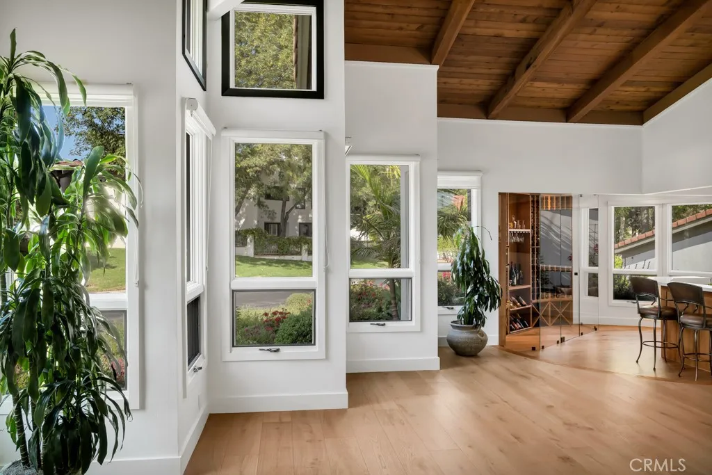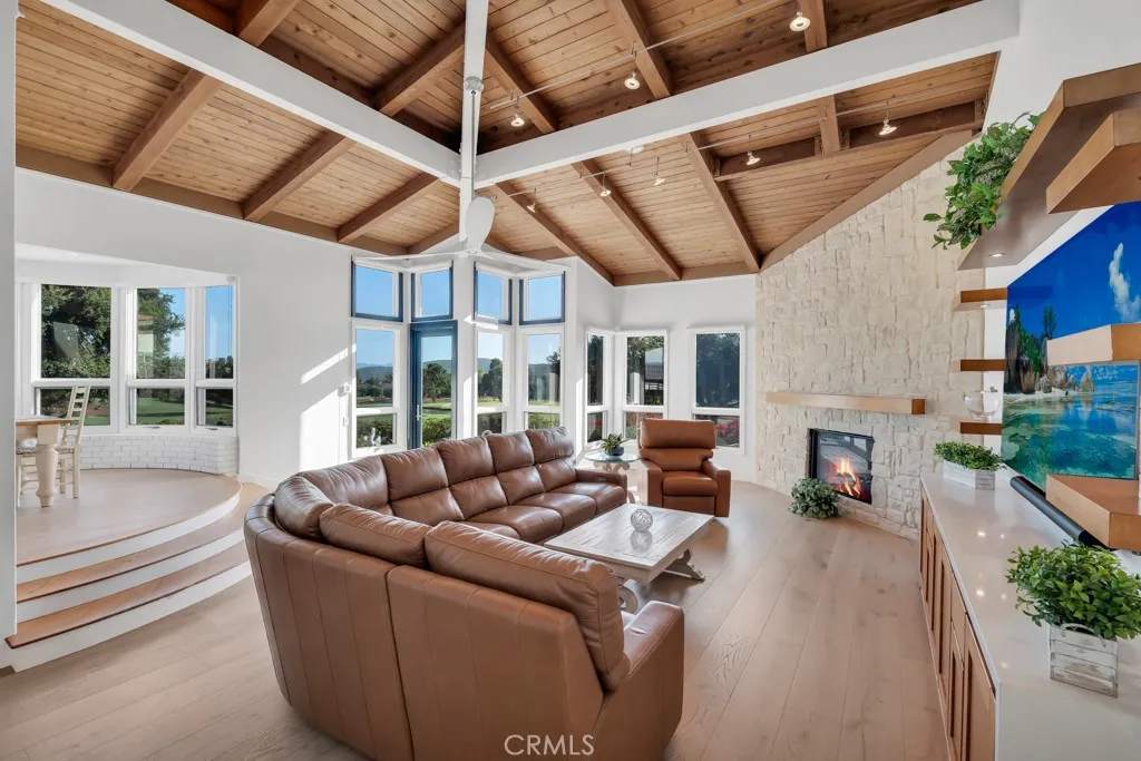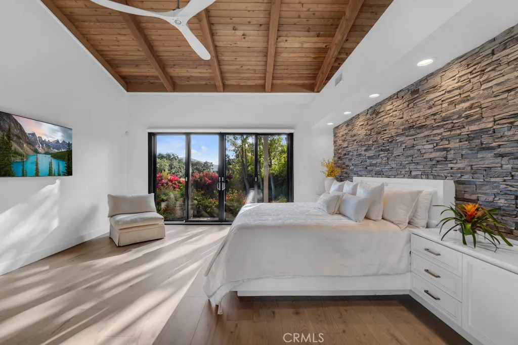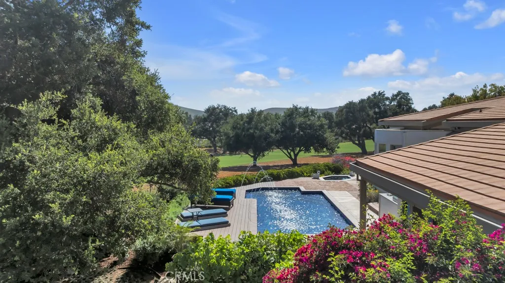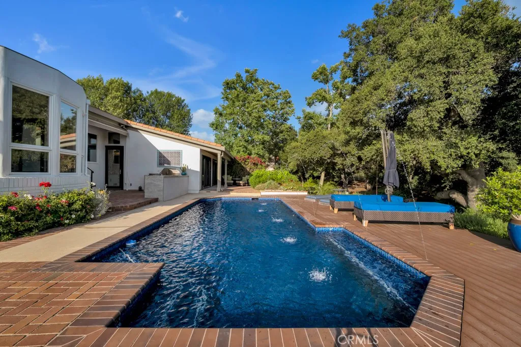 OPEN HOUSE SUNDAY, APRIL 26th from 2pm to 4pm. The perfect fusion of rare, high end jaw-dropping rustic contemporary architecture and million dollar architect-design landscaping all sited on a custom estate lot with explosive panoramic views of lake, golf course and creek, FEELS LIKE LIVING IN A 20-ACRE NATURE PRESERVE! Over four years in the making, completed 2026, completely remodeled and re-imagined North Ranch's premier CUSTOM (mostly one story) sprawling ARCHITECTURAL RUSTIC CONTEMPORARY gated landmark estate on the sixth hole of the North Ranch Country Club golf course. Multiple OAK TREES, BOTANICAL GARDENS, EXPANSIVE LAWNS and a boulder-studded winding CREEK WITH WATERFALLS. LAKESIDE and CREEKSIDE, in a RESORT SETTING, this architectural "work of art" is framed by over 300 feet of the newly remodeled North Ranch Country Club Golf Course, Lake, Creek, oak tree forest. Can be sold fully furnished. Perfectly positioned on a quiet golf course enclave in upper North Ranch surrounded by numerous custom multi-million dollar homes. Inspired by the legendary wood, glass and stone oceanfront bluff estates of Monterey and Carmel, it is artfully immersed into three-quarters of an acre of flat, usable SPECTACULAR ESTATE GROUNDS reminiscent of the breathtaking beauty of San Ysidro Ranch in Montecito. Rolling emerald lawns, botanical gardens, ancient oaks, specimen palms, grape vines, lemon trees, waterfalls, fountains and a babbling creek with its own bridge creates a setting of rare tranquility. The custom all-tiled pool and spa, firepit, and outdoor kitchen complete a setting designed for both serenity and celebration of life. THEN COMES THE STUNNING ARCHITECTURE. A massive double-door entry opens to soaring 25-foot beamed ceilings beneath skylights where iron and cut-glass fixtures hang like suspended diamonds. Walls of glass dissolve the boundaries between interior and exterior, inviting nature into every room. The estate delivers the ULTIMATE INDOOR-OUTDOOR living experience! Four bedrooms, Three and one half baths, living room, family room, formal dining room, breakfast room overlooking pool and lake, pub room w 300-bottle glass wine closet with bar, library with architectural spiral staircase next to primary suite, custom pool, spa, new hardwood plank floors throughout, new black sliders, mostly ONE level, approx. 4,642 Sq. Ft, lot is 30,492 Sq. ft, HOA is only $120 per month!