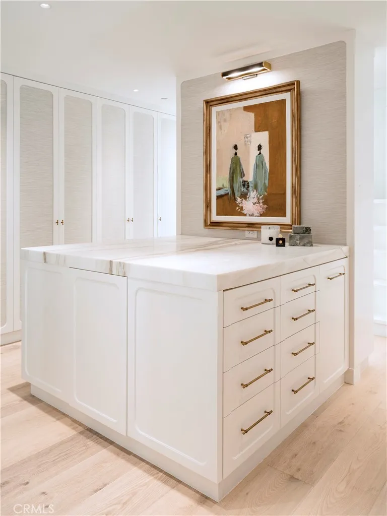 BAYSHORES | NEWPORT BEACH | Set within the private, gated waterfront community of Bayshores, 2442 Marino Drive is a rare, fully authored bespoke estate by acclaimed interior designer Shelley Starr, conceived and crafted over two years as a deeply personal architectural statement rather than a spec home. The residence offers approximately 6,771 square feet of refined living space plus an 832 square foot three-car garage on an approximately 9,000 square foot lot, featuring five bedrooms, five bathrooms, two-half bathrooms. Sculptural architecture with graceful curves, custom oak and walnut paneling, forged bronze detailing, and a dramatic marble staircase define the interiors, while reclaimed wood laid in a bias herringbone pattern introduces warmth, depth, and a sense of heritage. Designed for both daily living and elevated entertaining, the home includes a chef-ready bespoke kitchen anchored by an Italian marble island with Sub-Zero, BlueStar, and Miele appliances, a restorative primary suite with harbor views, private balcony, dual walk-in closets and an additional luxury accessory closet, and a spa-like primary bath with heated marble floors, a sculptural marble shower with Frish finished slabs, hand-plated detailing, and a custom round nickel soaking tub by William Holland. Four additional en-suite guest bedrooms, a private office, a family loft with media and private gym, and a private spa with cold plunge, sauna, jacuzzi, and heated stone floors complete the interior program. Outdoor living includes over 3,000 square feet of landscaped yard and entertaining areas with harbor views, while the location offers a five-minute walk to two private beaches and the community marina, private gated access to Balboa Bay Club, and the rare ability to walk to your boat and be on the water at a moment’s notice.
