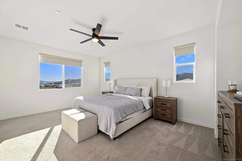 MOVE-IN READY! This nearly new Citro home offers modern design, smart technology, and serene countryside views. Thoughtfully designed for today’s lifestyle, the floor plan features a full bedroom and bathroom on the ground level—perfect for guests, multigenerational living, or a private home office. The main level showcases an open-concept kitchen and living area, creating a bright, welcoming space ideal for everyday living and entertaining. The upgraded kitchen is a true standout, featuring quartz countertops, a stylish tiled backsplash, white shaker cabinetry, modern black hardware, and a walk-in pantry for exceptional storage. Numerous builder upgrades have been added, and the seller will provide a complete list. Upstairs, you’ll find the remaining bedrooms and bathrooms, along with a full laundry room equipped with a side-by-side, full-size washer and dryer. Smart Home features allow you to control temperature and lighting right from your phone, adding both convenience and efficiency. Meander outside to enjoy peaceful countryside views from the large covered patio and spacious, grassy backyard—perfect for relaxing, play, or outdoor gatherings. The garage is equally well-appointed with a 220V outlet for EV charging and overhead storage racks, offering both functionality and future-ready convenience. Just down the road, Willow Grove Park provides a nearby playground for outdoor fun. Residents of Citro enjoy outstanding community amenities, including a community center, resort-style pool, 14 miles of hiking and biking trails, a dog park, and a community garden. With owned solar, contemporary finishes, and a prime location in one of the area’s most sought-after newer communities, this home delivers the perfect blend of comfort, efficiency, and lifestyle.