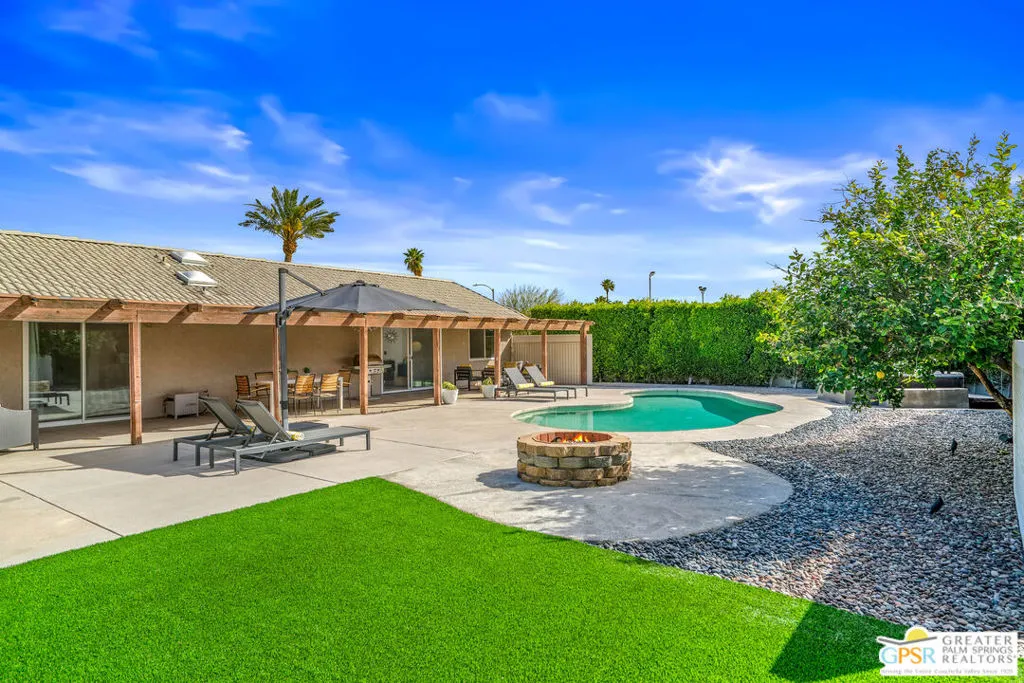 Welcome to 68325 Peladora Road, your desert oasis nestled in the heart of Cathedral City, CA. With over $60,000 in recent enhancements, this home combines energy efficiency with the laid-back charm of desert living. From the moment you arrive, you'll notice the thoughtful details that set this property apart. A brand-new front door makes a stylish first impression. Inside, an open-concept design floor plan with an abundance of natural light creates an inviting and versatile living space. Recent upgrades include a brand-new HVAC system, new energy-efficient windows and sliding doors throughout that bring the outdoors in, and a cutting-edge water softener and filtration system for added comfort. The kitchen boasts quartz countertops and brand-new stainless steel appliances ideal for everything from quiet mornings to lively dinner parties. The primary suite is a retreat of its own, featuring a tranquil ensuite bathroom with a walk-in closet. The updated guest bathroom offers a modern touch, while additional bedrooms provide flexibility for family, guests, or a work-from-home setup. The perks don't stop there. The newly drywalled and insulated garage now includes an EV car charger, catering to eco-conscious homeowners. Step out to the back yard and your private paradise awaits: a sparkling pool and spa surrounded by lush greenery and ample space for soaking up the sun or hosting unforgettable evenings under the desert stars. Perfectly situated, this home is adjacent to Panorama Park, Cathedral Cities oldest and largest park offering an abundance of amenities. Whether you're in the market for a full-time residence, a vacation escape, or a smart investment, 68325 Peladora Road checks every box.
