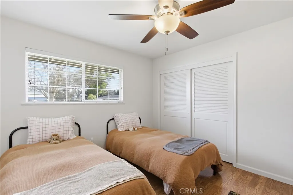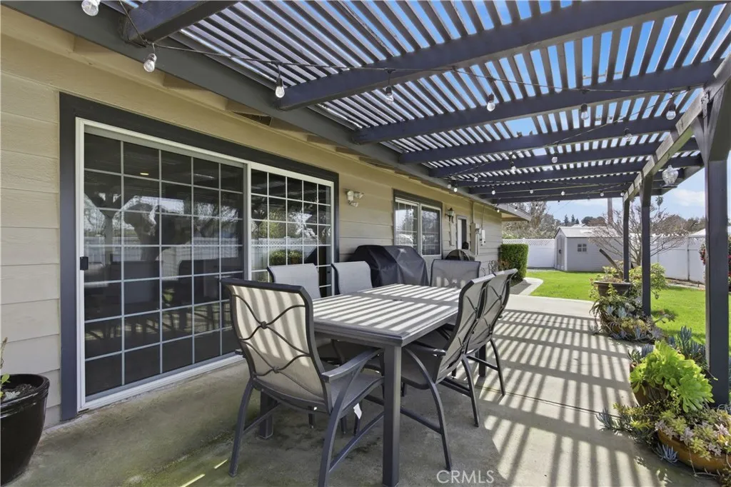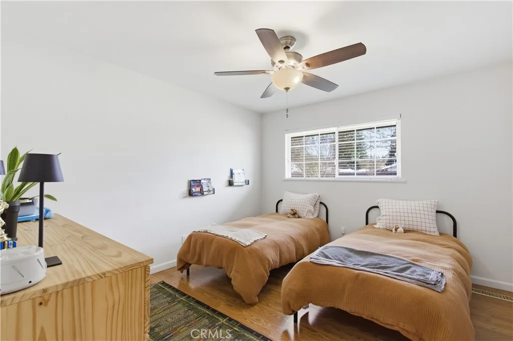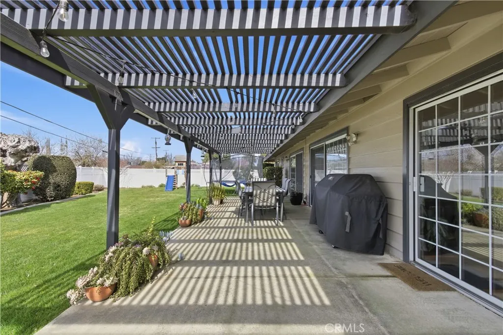 OWNED SOLAR! Welcome to your dream home nestled in the desirable Harris Acres Subdivision! This stunning 4-bedroom, 2-bathroom residence boasts 2,006 sq ft of single-story living space, perfectly situated on an expansive 13,580 sq ft lot. As you arrive, you'll be captivated by the fully landscaped front yard, featuring a natural rock entryway and a large cement driveway. Step inside to discover a beautifully maintained home and stunning hardwood floors. The open-layout kitchen is a chef's delight, offering granite countertops, updated appliances, and a dual-sided fireplace that adds warmth to the dining area. The primary bedroom is a serene retreat, complete with an en-suite bathroom for ultimate privacy. Additional highlights include 22 owned solar panels, a newer HVAC system, dual pane windows, and clean lines throughout, reflecting pride of ownership. The backyard is a true oasis, offering over a quarter acre of space with mature landscaping and a patio pergola perfect for relaxation and entertaining. Located near the Bear Creek path, shopping, and dining, this home offers the perfect blend of comfort and convenience. Don't miss the opportunity to make this exceptional property your own!