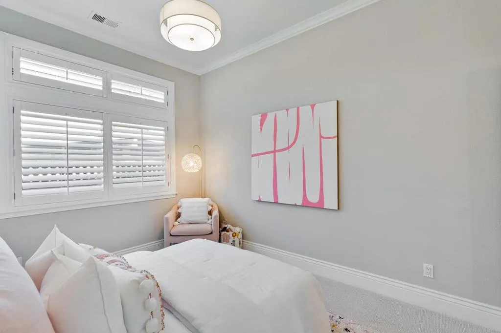 Remarkably stunning 5-bedroom, 4-bathroom home located in prime location with top Cupertino schools! This beautiful home boasts 3,526 sq ft of living space with an impressive floor plan, features high ceilings, crown molding, and recessed lights. Elegant front door and be welcomed to the formal living room showcases an attractive fireplace and dining area, lined with multiple designer windows with shutters for a light-filled and inviting space for guest entertaining. The gourmet kitchen is a chef's dream with premium appliances including gas cooktop, vent hood, refrigerator, dishwasher, built-in oven and microwave, in addition to the added luxury of granite countertops, breakfast nook, and plenty of cabinetry for storage. The bright family room is complemented by a stylish sliding glass door that opens to the backyard deck with built-in seating and well-maintained lawn creating a seamless indoor/outdoor area to unwind, study, or play. Primary suite is complete with a soaking tub, tiled shower, double vanities, and walk-in closet. Expansive lower level with great room, suite, and bedroom provides a versatile space perfect for home theater or home office. Also include a laundry room, attached 2 car garage, hardwood flooring. Convenient location to shops, parks and commute routes.