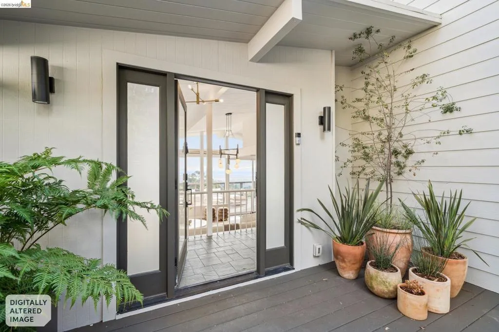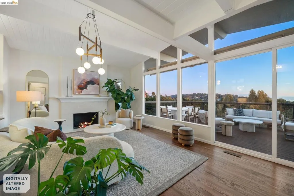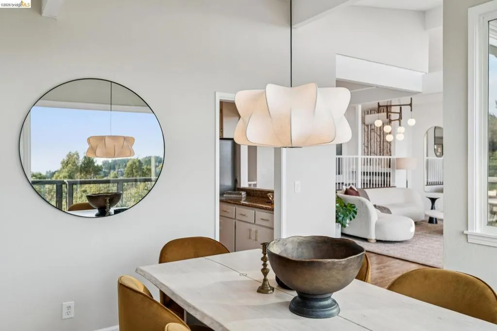 Montclair Mid-Century with stunning Bay views. This serene Tom Lowe style home is updated throughout. Step into a modern living room framed by walls of glass that capture sweeping vistas of the Bay and Oakland hills. A newer expansive deck extends the living space outdoors—ideal for dining under the stars and effortless entertaining. The main level also features a light-filled dining room and an updated eat-in kitchen with pantry storage and a built-in seating area. A versatile bonus room is perfect for a home office or creative space, while a laundry room and additional half bath add everyday convenience. The lower level offers a private primary suite with sliding doors that open to a lower deck, two additional bedrooms, and a full bath. Original mid-century tile surrounds remain intact, preserving the home’s timeless character. Additional highlights include a spacious two-car garage and a front deck ideal for a container garden. Located just minutes from top-rated schools, The Hills Swim & Tennis Club, and multiple hiking trails, this home offers the best of Montclair living.