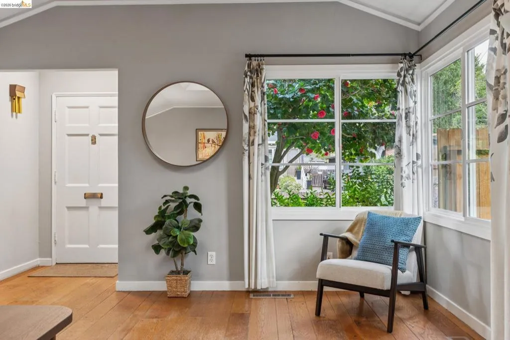 Charming California bungalow on a tree-lined street featuring hardwood floors, a skylit living room with fireplace, updated kitchen and baths, and a light-filled dining room. Enjoy views of SF and Oakland from the primary suite, and rear bedroom and backyard. plus mature drought-tolerant landscaping, basement storage, garage with EV charger, and dedicated laundry. Conveniently located in the Upper Laurel near Highways 13 and 580, with easy access to neighborhood shops and restaurants.