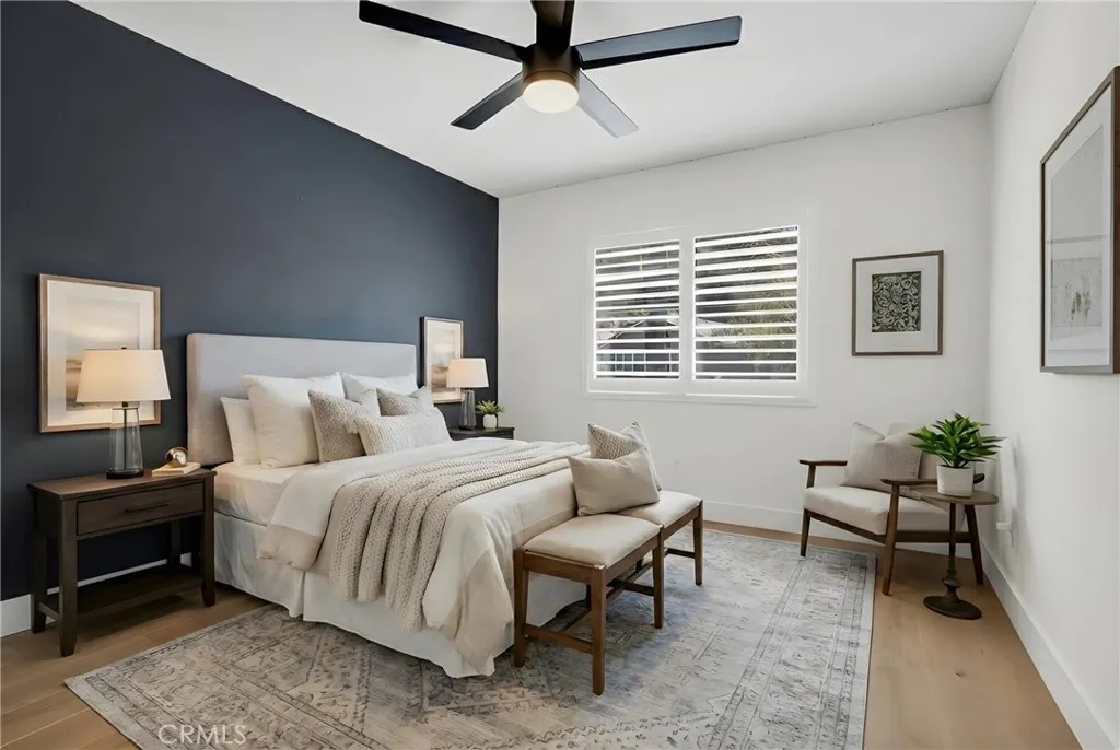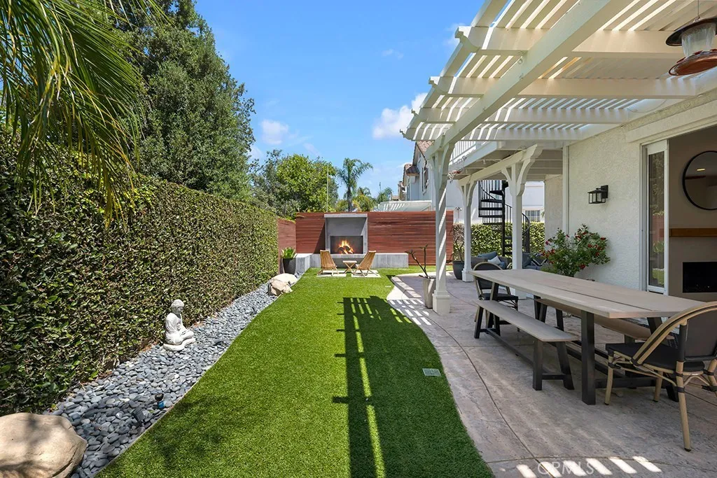 Welcome to 545 Shadow Lane, a beautifully updated 4-bedroom, 2.5-bath residence located within a small double cul-de-sac gated community. This light-filled home features soaring ceilings, wide-plank white oak flooring, and a thoughtfully designed open layout ideal for everyday living and entertaining. The remodeled kitchen showcases newly painted cabinetry, Taj Mahal quartzite countertops, stainless steel appliances, a large pantry, soft close drawers and doors, and a breakfast bar that flows seamlessly into the family room with fireplace and custom built-ins. The adjacent living and dining spaces add versatility and great space for entertaining. Upstairs, the spacious primary suite offers a walk-in closet with built-in cabinets, spa-inspired bath with dual vanities, soaking tub, and separate shower. Three additional bedrooms share an updated full bath. The private backyard is designed for indoor-outdoor living with a covered patio, low-maintenance turf, modern outdoor fireplace feature, mature hedging for privacy, and a spiral staircase leading to a deck with views. Additional highlights include plantation shutters, recessed led lighting, wood shaker interior doors with updated hinges and hardware, custom closet systems, tankless water heater, newer HVAC, and recent exterior paint. Enjoy the convenience of an attached two-car garage with direct access and the added perks of the community's swimming pool and spa. Located just moments from Wood Ranch Elementary, scenic hiking and biking trails, local dining, and the prestigious Wood Ranch Country Club, this home offers a lifestyle of comfort and convenience. Don't miss this incredible opportunity to own a turnkey home in one of most sought-after neighborhoods in Wood Ranch!