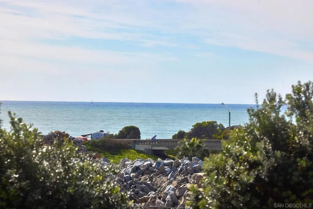 Coastal Carlsbad living at its finest! Just steps from the pristine sands of Ponto Beach, this stunning OCEAN VIEW, detached home sits perfectly in the exclusive gated community of Vistamar. Thoughtfully upgraded, this 2BR+Optional/2.5BA offers the perfect blend of comfort, style, and seamless indoor-outdoor living. Inside, the home showcases beautiful wood flooring, fresh interior paint, and new carpeting. The open concept living/dining space features a cozy gas fireplace, ceiling fan, and sliders to the private patio. The upgraded kitchen features newer cabinetry with glass doors and striking Cosmos granite countertops, tile backsplash, stainless steel appliances & range hood, farmhouse sink, and large center island with ample storage. Upstairs, the spacious primary suite features ceiling fan, large walk-in closet with built-ins, and spa-like bath with large walk-in shower with rainfall showerhead and double vanity. The lounge/office area in the primary retreat could be easily converted to a third bedroom! An additional bedroom and bath complete the upstairs. Step outside to the private, lushly landscaped patio retreat—complete with a fire pit, lounge area with pergola, redwood plant wall, and an outdoor shower with warm water, perfect after a morning surf. The two-car garage includes added storage racks. RV storage available. Residents of Vistamar enjoy resort-style amenities including a community pool and spa, plus tennis, basketball, and volleyball courts—all just moments from the sand!