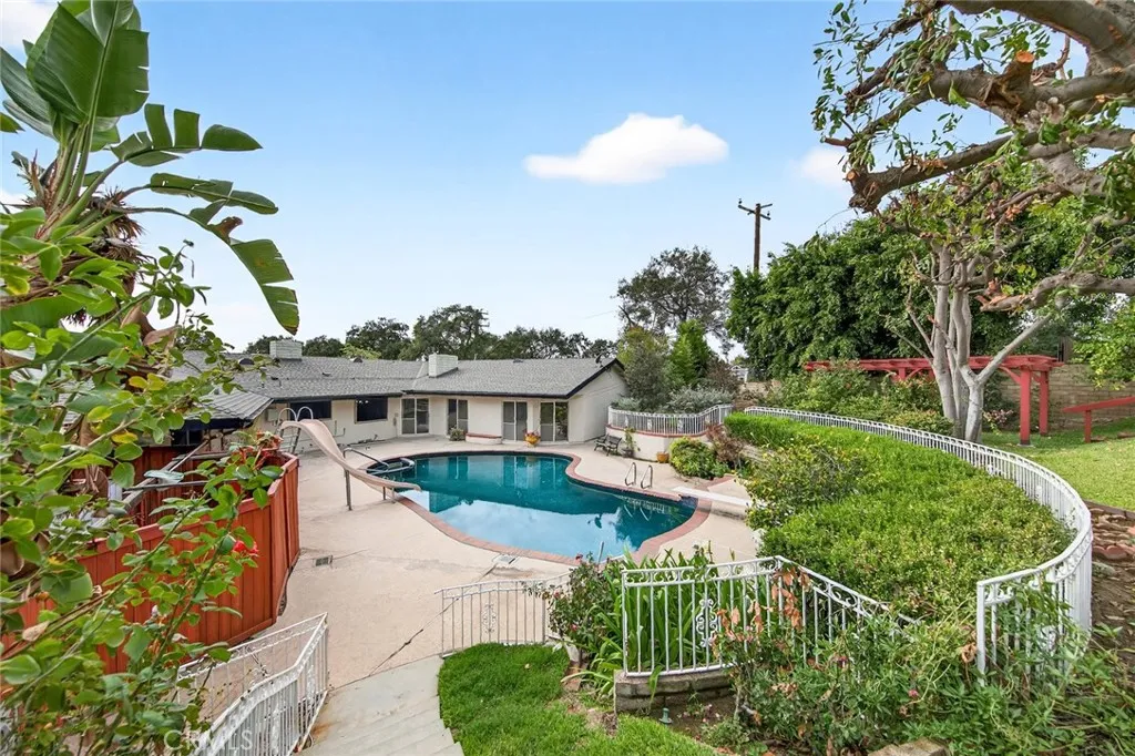 Welcome to 408 Meadow Lane, Monrovia — a rare opportunity to own a beautifully updated estate on a quiet cul-de-sac in one of Monrovia’s most sought-after neighborhoods. Situated on over half an acre, this impressive property offers a spacious 5-bedroom, 4-bathroom main residence plus a detached 1-bedroom, 1-bath ADU — perfect for extended family, guests, or rental income potential. The main home features a versatile recreation room, two cozy fireplaces, and a thoughtfully designed layout ideal for both everyday living and entertaining. Recent renovations include new lighting, fresh interior paint, and partially updated flooring, creating a bright and modern feel throughout. Step outside to your private backyard retreat complete with a sparkling swimming pool, lush garden, and expansive outdoor space with endless possibilities. The U-shaped driveway enhances curb appeal while offering ample parking. Additional highlights include a fully paid solar energy system, multiple A/C condensers for enhanced comfort, and a dedicated laundry room. This exceptional property combines space, functionality, and location — all in a peaceful cul-de-sac setting within desirable Monrovia