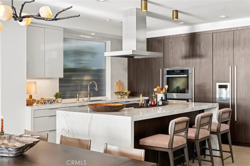 Stunning, State-of-the-Art Waterfront Residence with Dock, spanning over 2,600 square feet, and incomparably located on the idyllic Quiet End of Balboa Island. This pristine home is a modern masterpiece, built in 2018 as a collaboration between Chuck Van Cleve and CJ Light Associates, with no expense spared and exceptional attention to detail throughout. Exquisitely designed by DISC Interiors, the home blends modern architecture with warm, livable interiors. Wood, concrete, stone, steel, and glass are innovatively combined into clean lines and geometric shapes, providing endless opportunities to enjoy the abundant natural light and spectacular views on all three levels. Visitors are greeted by a wall of glass doors opening to the large, elevated front patio, featuring lush vegetation, outdoor heaters, and integrated speakers. The open floor plan of the first level provides a seamless flow from the tranquil great room with fireplace, through the dining area overlooking a scenic fountain, to the impeccably outfitted chef’s kitchen. The second level features a luxurious primary retreat with spa-quality bathroom, expansive walk-in closet, and private balcony with an unforgettable Harbor view. Completing the second level are two ensuite bedrooms with custom closets, and a well-equipped laundry room. The crowning jewel of the home is the 3rd-level roof deck, a true entertainer's oasis. Designed for year-round enjoyment with both covered and uncovered spaces, full bar with appliances and seating, firepit, bbq, jacuzzi, two televisions, bathroom with shower, and a spectacular 360-degree view. Additional features include a convenient ELEVATOR to all three levels, Control4 whole-house automation system, fully equipped finished garage with plentiful storage and wine fridge, and a brand-new shared dock with private boat slip and seating. 304 South Bayfront is contemporary design at its very best, a perfect opportunity to experience luxury Coastal living in an unparalleled location.