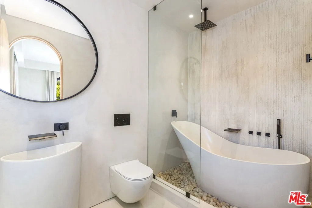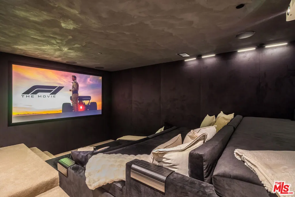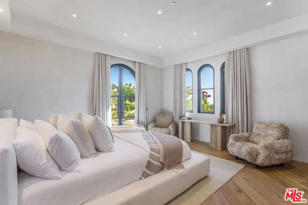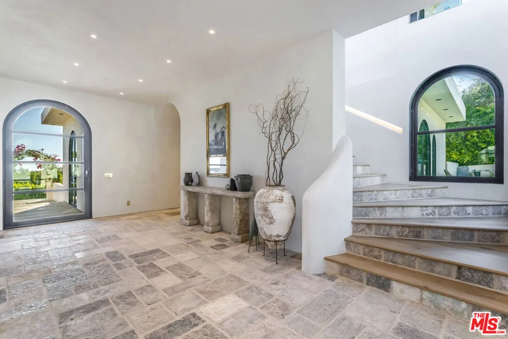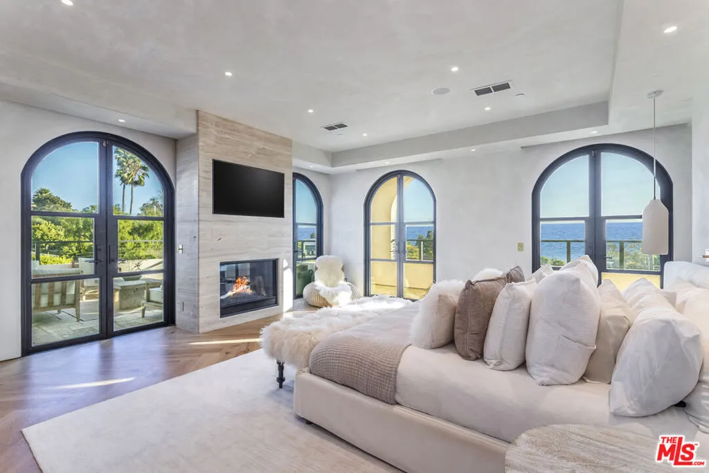 Tucked behind private gates on a flat half-acre, this one-of-a-kind Malibu estate feels more like a sanctuary than a home. The arrival is cinematic, a graceful drive-in/out motor court framed by olive and fruit trees, manicured lawns, and sculpted succulents that lead you into a world of style, calm, and wonder. Inside, over 5,950 sq ft of interiors flow effortlessly through arched hallways, reclaimed Italian limestone, and hand-finished plaster walls. Every room is alive with detail; reclaimed oak floors underfoot, hand-crafted steel windows framing ocean views, and soaring spaces washed in natural light. Each of the four grand bedroom suites is a retreat, with its own spa-like bathroom and walk-in closet, crowned by a primary suite that rivals any five-star escape. The heart of the home is expansive yet intimate: a kitchen dressed in Taj Mahal stone and hand-built oak cabinetry, opening to living spaces designed for both celebration and serenity. Beyond, over 3,000 sq ft of terraces and decks invite endless entertaining, fireplaces flickering under the stars, Moroccan-tiled pool and spa sparkling beside fountains, and wide open views of the Pacific stretching endlessly before you.Every practical luxury has been considered. The home is filled with an abundance of fixtures and amenities, including wine fridges, drinks fridges, freezers, ice machines, and two dishwashers to make entertaining effortless. A dedicated utility room and generous storage areas keep the home seamlessly organized, while the pantry, laid in exquisite Morelon tiles, offers a beautifully appointed space for every culinary and household needs. Below, an entire world awaits. A theatre with popcorn machine, a wine cellar, a speakeasy lounge with DJ booth, and a brass-finished bar carved into rock walls. Every touch has been curated by renowned designer Brittny Button, whose award-winning collection graces the interiors alongside treasures like a 13th-century fireplace and historic Moroccan fountains. Wellness is woven in: a gym, sauna, steam, and cold plunge open to the private pickleball court, with a self-contained Airstream guest house offering the perfect hideaway. Sustainability, comfort, and security are paramount, with a full battery-backed solar system, water purification, clean air technology, Crestron home automation, and a complete camera/alarm system. This estate is more than architecture, it's a feeling. A place where the soul of Morocco meets the magic of Malibu, where every sunset becomes a private painting, and every gathering turns into a memory. Featured in Architectural Digest, Vogue Living, and The Luxury Home Show, it is a creation that simply does not exist anywhere else.