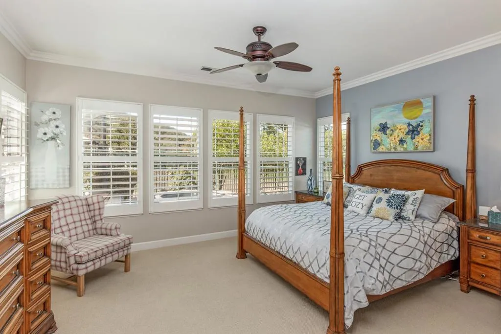 Stunning one story Eagle Ridge Mediterranean home on cul-d-sac, loaded with top of the line upgrades and special landscaping design. It is ideally set across from open space for privacy with golf course & mountain views. Features include hardwood floors, crown molding, custom built-ins, and high-end windows. Gourmet kitchen with large island, walk-in pantry, and breakfast nook opens to family room with gas fireplace & custom surround sound. French doors lead to a private courtyard for outdoor dining; built in barbecue area & fire pit area, backyard offers a sparkling low-maintenance pool & spa with waterfall feature. Luxurious primary suite spa like bathroom, and custom walk-in closet. Solar power home with dual zone for heating and AC & with EV outlet. Located in secure gated Eagle Ridge community with Clubhouse, Pools, Basketball court, Tennis courts, Pickleball Courts, Bocce Ball Courts, Organized activities, Parks, Walking Trails, and low HOA fees. Luxury with Location, Location, Location...