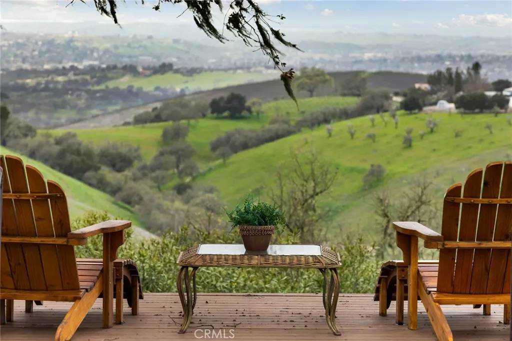 Welcome to Oak Tree Vista, a hilltop sanctuary perched on nearly 20 acres of pristine Templeton hillside defined by breathtaking, 360-degree views that stretch as far as the eye can see. This estate offers a rare combination of privacy, scale, and some of the most awe-inspiring vistas on the Central Coast. Accessed via a private electric gated entrance and a fully paved driveway, Oak Tree Vista makes you feel as though you are living inside a landscape painting, with every window framing a different piece of the horizon. The residence itself is a thoughtfully designed 3-bedroom, 2-bathroom single-level home featuring a seamless open floor plan and dramatic vaulted ceilings that draw the eye toward walls of glass.