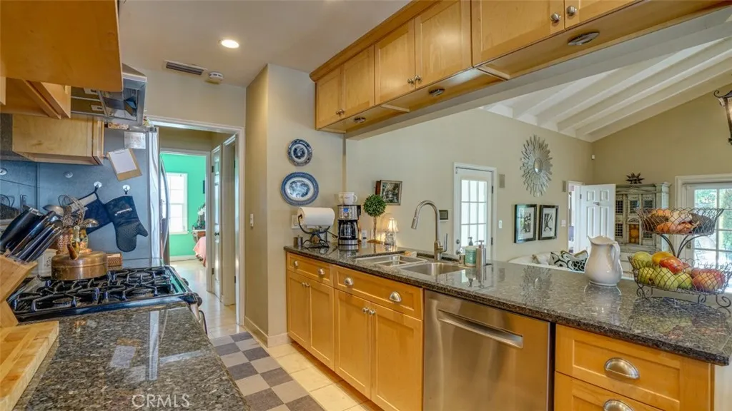 Welcome Home. Back on the market after the previous buyer was unable to perform at the final stage, this beautifully updated home offers a rare second chance to own in Burbank’s highly sought-after Media District / Rancho Adjacent neighborhood. Ideally situated mid-block on a charming residential street, this turnkey residence blends warmth, style, and functionality. Inside, rich bamboo flooring, plantation shutters, and a thoughtfully designed floor plan create an inviting flow for everyday living and effortless entertaining. The remodeled kitchen features granite slab countertops, a quiet Bosch dishwasher, and a breakfast bar that opens seamlessly to the family room. A custom built-in entertainment center with integrated Bose speakers, flat-screen inset, HDMI connectivity, and surround sound pre-wiring makes the space perfect for movie nights and gatherings. Designed with comfort and efficiency in mind, the home also includes a tankless water heater and solar panels. Step outside to an expansive covered deck overlooking a professionally landscaped backyard, offering the perfect balance of lush lawn and patio space. Accent string lighting creates an ideal setting for relaxing evenings or entertaining under the stars. Additional features include central air and heat, two granite fireplaces, recessed lighting, elegant travertine bathrooms, and crown molding throughout. The epoxy-finished two-car garage provides excellent loft storage, along with an additional approximately 300 sq. ft. (est.) bonus room behind the garage—ideal for a home office, gym, creative studio, playroom, or potential future ADU conversion. A rare opportunity to own a move-in-ready home in one of Burbank’s most desirable, studio-adjacent neighborhoods.