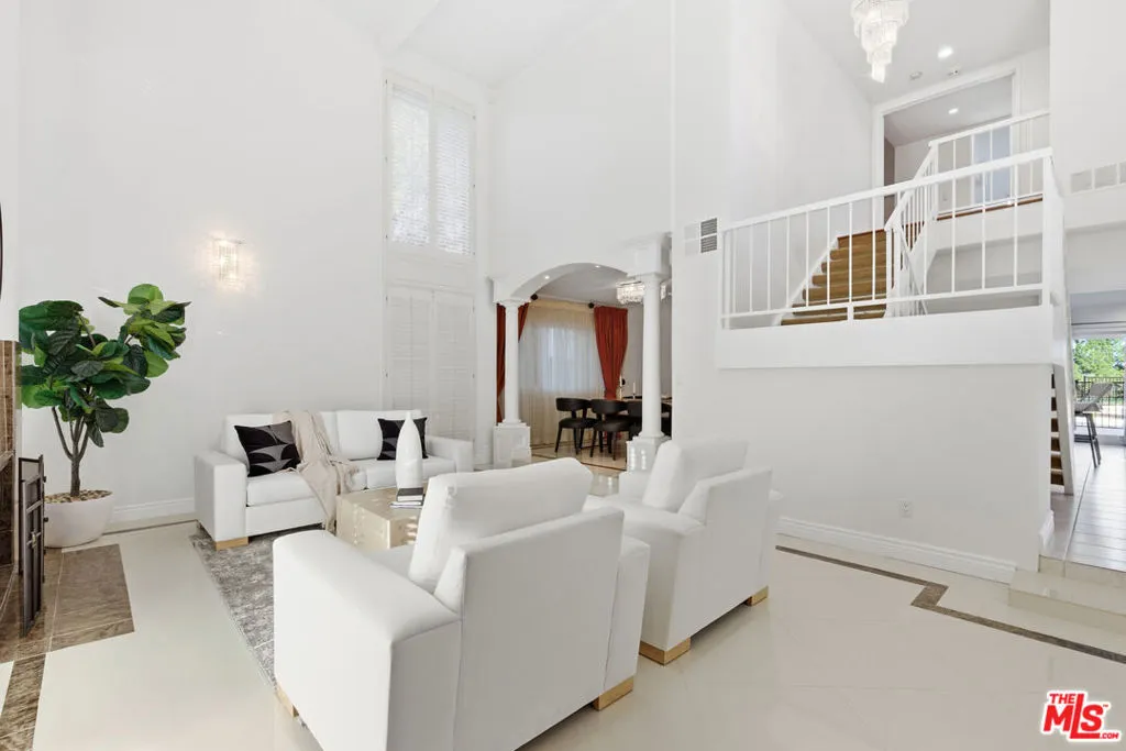 Nestled south of the Boulevard in prime Tarzana, this beautifully designed 3-bedroom, 2.5-bath residence offers an inviting layout, soaring ceilings, and seamless indoor-outdoor living. Privately set in a hillside location, the home captures sweeping city and mountain views while enjoying a quiet and peaceful setting. Upon entry, you're immediately greeted with tranquil views of the lush backyard greenery and sparkling pool, setting the tone for the home's open and airy feel. Natural light pours in throughout, enhancing the warm yet expansive ambiance. To the right of the entry are two well-appointed downstairs bedrooms featuring engineered Santos mahogany wood floors, along with a full bath and direct access to the attached garage for everyday convenience. The kitchen overlooks the backyard, creating the perfect backdrop for cooking and gathering. The expansive living room features dramatic high ceilings that evoke a grand, open feel while still remaining comfortable and inviting, ideal for both entertaining and relaxing. Upstairs, the primary suite serves as a true retreat, complete with a spacious bedroom, full bathroom, and separate walk-in closets. Additional highlights include copper plumbing throughout, a roof replaced in 2020, and a pool heater, filter and pump replaced approximately two years ago, providing enhanced quality and efficiency. Ideally located just moments from Mulholland Hills Country Club, this home provides convenient access to golf, dining, and social amenities while maintaining the privacy and charm of a south-of-the-Boulevard neighborhood. With its desirable hillside setting, functional layout, abundant natural light, and stunning views, this exceptional Tarzana residence blends comfort, space, and lifestyle into one remarkable offering.