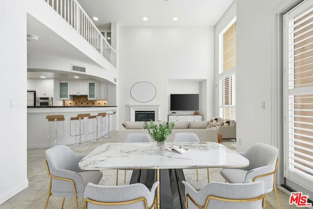 Discover elevated coastal living in this stunning top-floor penthouse in the highly sought-after Paraiso community of Playa Vista. Offering 2 bedrooms, a spacious loft, and 2.5 bathrooms across 1,886 square feet, this exceptional residence blends volume, light, and modern sophistication. Enter on the main level to a dramatic living room filled with natural light, highlighted by soaring two-story ceilings, a cozy fireplace, and a generous balcony with serene exterior views. The open-concept layout flows effortlessly into the dining area and chef's kitchen, thoughtfully designed with stainless steel appliances, abundant cabinetry, expansive counter space, and a breakfast bar ideal for casual dining and entertaining. Upstairs, the airy loft overlooks the living space below, creating a striking architectural statement while offering the perfect flex space for a home office, media room, or guest retreat. The lower level provides a private sanctuary with two well-appointed bedrooms and two bathrooms. The oversized primary suite features a walk-in closet, its own private balcony, and a spa-inspired en-suite bath complete with dual vanities, a soaking tub, and a glass-enclosed shower. A spacious guest bedroom and beautifully remodeled guest bath complete the level. Additional highlights include side-by-side laundry, abundant windows throughout, custom built-ins, and two designated parking spaces. Enjoy the best of Playa Vista living with access to premier community amenities including The CenterPointe Club, The Resort, and shopping and dining at Runway at Playa Vista. This is penthouse living at its finest--where luxury, comfort, and convenience meet.