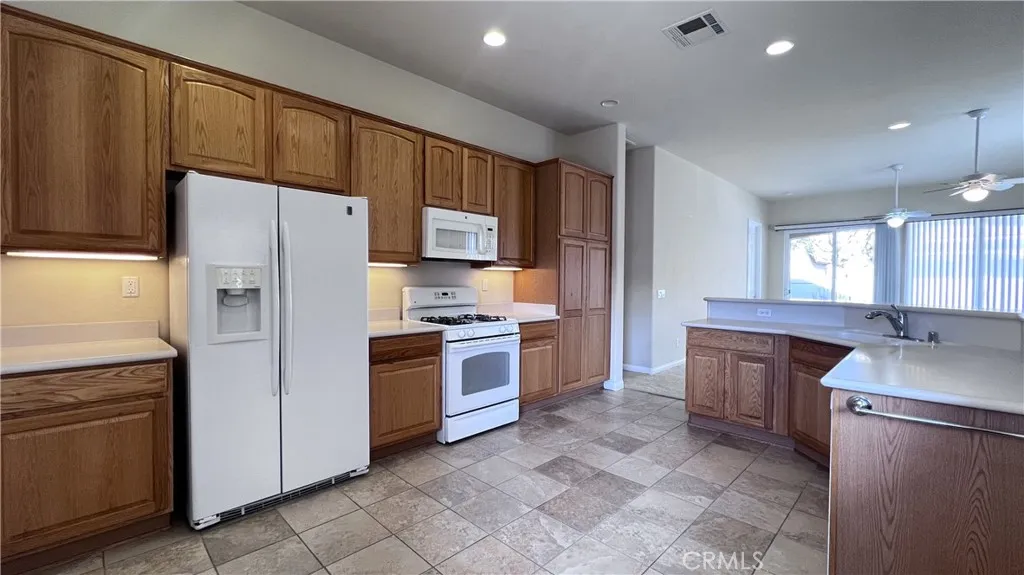 Welcome to your new 2 bed, 2 bath home in the 55+ Sun City by Del Webb Community. The spacious living room features natural lighting, dual ceiling fans, and access to the backyard. The kitchen offers ample cabinet and counter space, an eating area and breakfast bar, with included appliances as well! The bedrooms are good sized and include carpet. The primary bedroom is accompanied by a spacious primary bathroom featuring dual vanities, a stand-in shower, and large walk-in closet! In house laundry room with W/D hookups, a counter area with a deep sink, and tons of cabinets for extra storage. 2 car garage includes storage cabinets. Relax under the covered patio on those beautiful, Desert days. Gated access provides extra security and convenience. Community features Ashwood Golf Course, fitness center and clubhouse, pools/spa, and close proximity to entertainment and shopping!!
