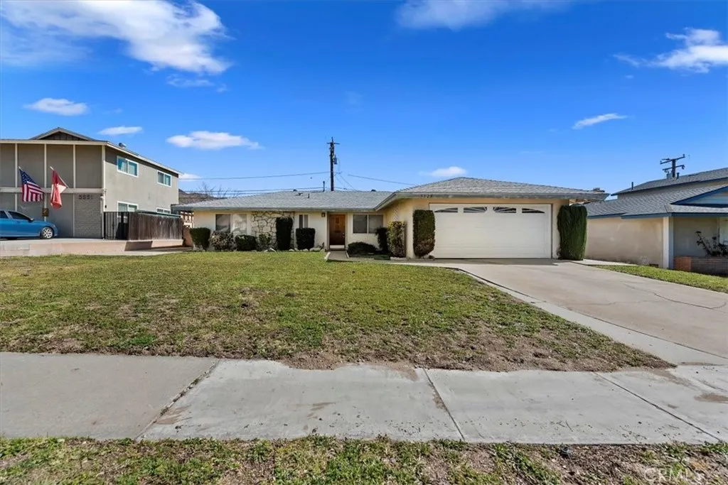 Diamond in the rough with the potential to become a sparkling jewel! Priced to reflect its condition, this property will be sold as-is and will require a new roof and updates to truly make it shine. The price point accounts for the repairs needed, presenting a great investment opportunity with strong upside potential. This charming single-story home offers inviting exterior appeal, and a peaceful neighborhood. A tiled entry flows into the kitchen and dining area, while the spacious living room with fireplace provides for the versatility of a huge family space or a combined formal dining and living area. The sliding glass door opens to the backyard, creating great indoor-outdoor potential. There’s a nice sized primary suite with an adjoining ensuite bathroom and two additional bedrooms that share a main hall bathroom. Just needs a bit of updating but fully usable as you transform this home to suit your taste. The functional layout provides solid fundamentals ready for cosmetic updates or value-add improvements. There’s a two-car garage, and central air and heat. Additional features include an indoor laundry room. Situated on a 7,560 square foot lot, the backyard offers plenty of room to enjoy outdoor entertaining. The single-level floor plan appeals to a broad tenant and resale market. Ideal for buyers looking to renovate and build equity. Bring your vision and transform this property into the gem it’s meant to be.