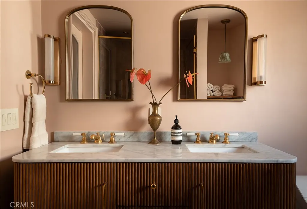 Welcome to 734 Parkman Ave, a design-forward single family home in one of Silver Lake’s most sought-after small-lot communities. The gem of this 9-home community, this property sits above the street, capturing abundant natural light, sweeping hillside views, and a rare sense of privacy. Fully transformed, this home is meticulously crafted to showcase exceptional design and refined taste. 9ft ceilings, chestnut European oak floors, custom baseboards and crown molding, and a full Farrow & Ball interior palette create architectural cohesion throughout. Thoughtful lighting with sculptural wall sconces and fixtures from Soho Home, CB2, and Arhaus, accentuates the home’s architectural details while creating warmth and ambiance. The open main level centers around a statement La Cornue range anchoring a true chef’s kitchen, conceived and curated by its owner, a world renowned food critic whose show has featured the home and whose cookbook includes this very kitchen, blending professional-grade performance with refined design. The kitchen also features integrated Miele, Bosch, and Fisher & Paykel appliances, deVOL fixtures and hardware, Silestone countertops with integrated pop-up outlet, and three handcrafted deVOL cranberry glass pendants above the island. Upstairs, three bedrooms provide flexibility and comfort. Two fully renovated bathrooms feature Zia Zellige tile, with one further enriched by imported British floor tiles from Bert & May. All bathrooms are outfitted with unlacquered brass Phylrich fixtures and Kohler smart toilets. The primary suite includes a custom walk-in closet and private balcony. Off the foyer, French doors open to a dedicated study room with custom millwork ideal as a 4th bedroom, home office, or creative retreat. Additional highlights include newly decked porches with integrated seating, upgraded stair railings and bannisters, attached two-car garage with EV charger, automated irrigation planters, and a rooftop deck with bespoke pergola and panoramic views. Walking distance from neighborhood favorites including Maury’s, Silverlake Ramen, Bodega Park, Gong Gan, Osen Izakaya, Psychic Wines, Mixt, Tacolina, Picnic Coffee, Dayglow, and Van Leeuwen Ice Cream. With thoughtful design, curated finishes, and seamless architectural cohesion throughout, this home offers a level of craftsmanship and refinement that would be both costly and time-intensive to replicate, making it truly exceptional and distinctive within its category.