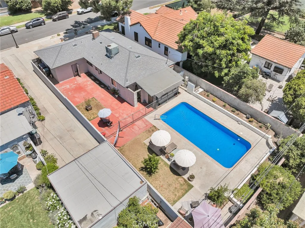 This Beautiful Pool home is located in one of Riverside's highly sought after Historical Districts, Palm Heights. Upon arrival the beautiful landscaping, recently updated exterior paint and Front Porch will welcome you in. The front entry opens into an open space with built in shelving and the wood floors that run throughout set the stage for the character this home offers. The large Livingroom features the beautiful picture window and brick fireplace. The dining room is adjacent to the living room and has an abundance of natural light that comes through the large windows. The kitchen has been updated but charm remains with a farmhouse sink, green cabinets and butcher block counter tops. The 3 good size bedrooms are conveniently located near the full bathroom. The bathroom has been updated and has a separate tub and shower. The bedroom to the rear of the home has an attached bonus room, this would be the perfect retreat area or office space. The garage is oversized and p[rovides access to the rear yard. The rear yard is your own oasis with a large pool and plenty of yard and patio space to host large get togethers. This is one of the favorite streets, the neighbors all stay connected and look out for each other. The roof was recently replaced, and the home was painted inside and outside. You can be in your new pool before Easter. The area is near local schools, the Riverside Plaza for restaurants, shopping and the Movie theater.