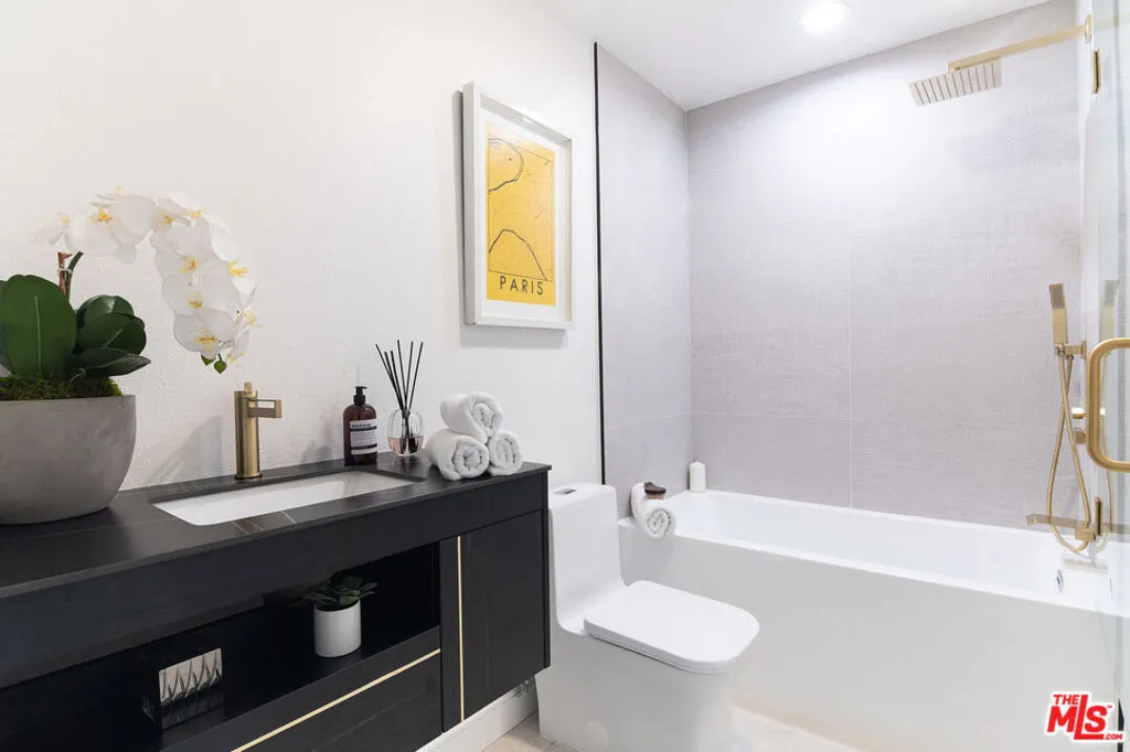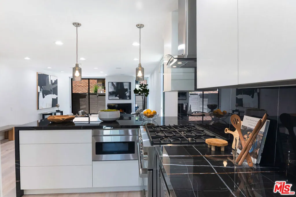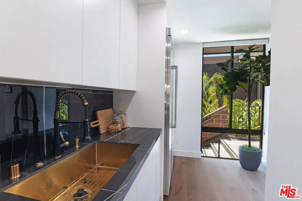 Newly renovated architectural townhome in the award-winning Carolwood Condominium residences, designed by renowned architect Ron Goldman, ideally situated on the coveted border of Beverly Hills. This sophisticated two-story residence offers 2 bedrooms and 3 baths, featuring high ceilings, expansive floor-to-ceiling windows, and refined designer finishes throughout.The dramatic step-down living room showcases hardwood floors, a fireplace, and glass sliders opening to a private patio oasis perfect for seamless indoor-outdoor entertaining and al fresco dining. The contemporary kitchen features custom cabinetry, premium stainless steel appliances, and sleek finishes. The light-filled primary suite offers a spa-inspired bath with a dual shower, creating a tranquil retreat. Additional highlights include two secured parking spaces and access to the building's fully equipped fitness center, resort-style pool, and spa. A rare opportunity to own an exceptional architectural townhome in a prime Beverly Hills-adjacent location. Truly a must-see.