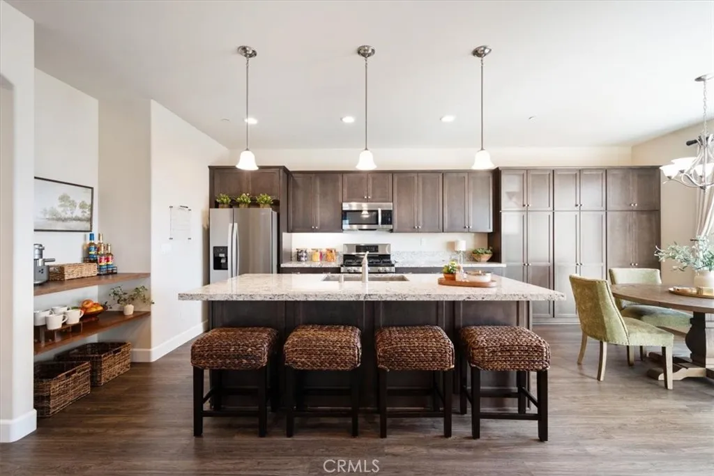 Nestled within the prestigious Toscano neighborhood—an enclave renowned for its Old World charm and modern luxury—this exquisite Tuscan-inspired residence offers an unparalleled blend of refined living and serene natural surroundings. Gracefully positioned on a desirable corner lot, the home enjoys a picturesque setting with direct access to the South Hills open space and scenic hiking trails, culminating in the tranquil Meadow area—perfect for those who appreciate effortless immersion in nature’s beauty. Spanning three generously appointed bedrooms and three full baths, this sophisticated single-level plan exudes understated opulence from the moment you step inside. Luxurious vinyl plank flooring flows seamlessly throughout the main living areas, complemented by smooth-finished walls and elegant 8-foot interior doors that enhance the sense of spaciousness and light. The inviting living room centers around a cozy fireplace, crowned by a sleek concrete mantle and hearth that adds contemporary warmth to the timeless design. Adjacent, the gourmet kitchen stands as an entertainer’s masterpiece: pristine granite countertops, premium stainless steel appliances, and custom cabinetry featuring soft-close drawers create a culinary haven of effortless functionality and style. Seamlessly connected to the formal dining room, this space invites effortless gatherings and memorable meals. Ascending to the upper level, the luxurious primary suite awaits with its expansive walk-in closet complete with bespoke built-in organizers, a spa-inspired en suite bath boasting dual sinks atop granite counters, and a grand walk-in shower for ultimate relaxation. Two additional bedrooms, each with ample closet space, share a well-appointed full bathroom, offering comfort and privacy for family or guests. Outside, the meticulously designed low-maintenance landscaping provides an idyllic backdrop for al fresco enjoyment—ideal for weekend barbecues, intimate gatherings with friends, or simply savoring the California sunshine. A two-car garage with durable epoxy-finished floors ensures both practicality and polish, while a comprehensive security system offers peace of mind. This rare offering in Toscano combines classic Tuscan allure with contemporary luxury finishes, all in a prime location that celebrates the best of Central Coast living. A true sanctuary of elegance and ease—welcome home.