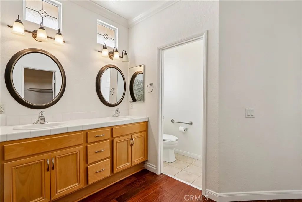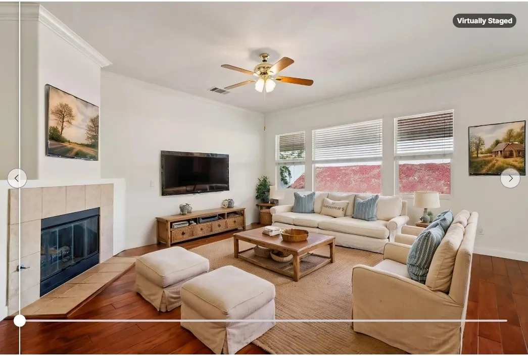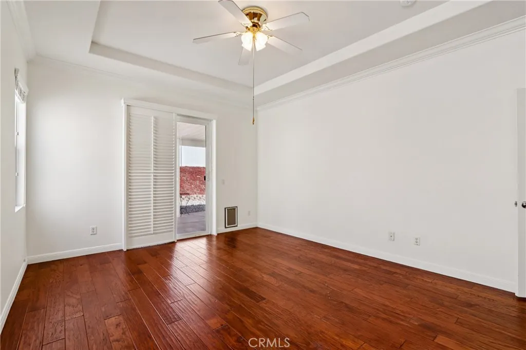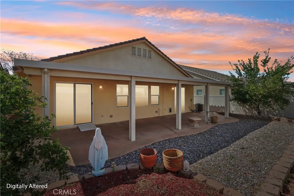 Welcome to resort-style living in the highly desirable Oasis 55+ community — where comfort, convenience, and low-maintenance living come together beautifully. This meticulously maintained home offers 2 bedrooms plus an optional 3rd bedroom with elegant French doors — perfect for a home office, den, hobby room, or guest space. With 2 full bathrooms, including a spacious primary bath with dual sinks and tub/shower combo, the layout is both functional and inviting. Step through the welcoming entry hallway into a light-filled great room with fireplace and built-in media niche, creating the perfect space to relax or entertain. The kitchen opens seamlessly to the dining area and features upgraded cabinetry, BRAND NEW stainless steel appliances, a large island, and light Corian countertops — ideal for gatherings or casual meals. Sliding doors lead to a covered patio, extending your living space outdoors. Throughout the home, you’ll find real scraped hickory hardwood floors, crown molding, plantation shutters, ceiling fans with remote controls in every room, and thoughtful custom touches that elevate the space. The spacious primary suite includes a walk-in closet and private patio access, while the secondary bedroom offers its own private bath — perfect for guests. Additional highlights include: Extra cabinetry in the laundry room; Oversized garage with custom built-in storage; Dedicated space for a golf cart; Beautifully maintained with high-end finishes. Enjoy the benefits of LOW taxes and NO Mello-Roos, plus HOA amenities that include front yard maintenance and trash service — making everyday living easy and stress-free. Located with convenient access to golf, lakes, walking trails, and community amenities, this is more than a home — it’s a lifestyle upgrade. Don’t miss this opportunity to live the good life in Oasis. This is truly not a drive-by — you must see it in person to appreciate all it offers.