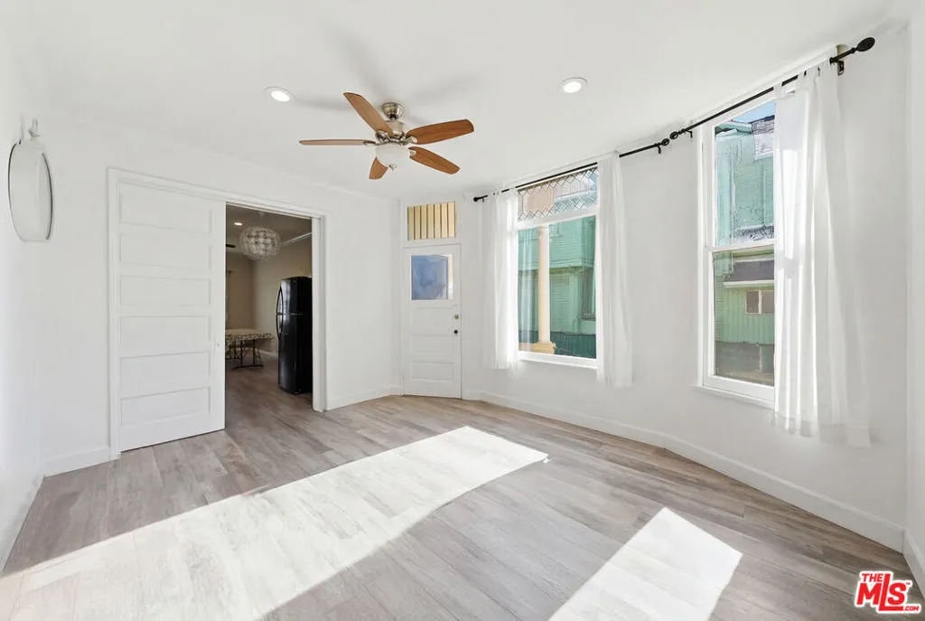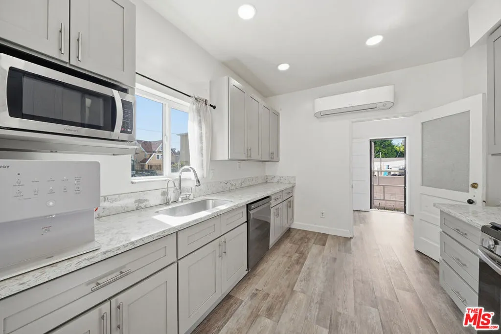 Welcome to this charming Spanish Colonial Revival single-family home near Downtown Los Angeles, offering approximately 2,110 sq ft of beautifully updated living space. This 4-bedroom, 2.5-bath residence also features a versatile den, providing flexible living options for modern Los Angeles living. Thoughtfully remodeled by the current owners, the home showcases newer kitchen appliances, updated cabinetry, modern countertops, and stylish laminate flooring throughout. The home also features multiple energy-efficient mini-split air conditioning units for individualized climate control in each bedroom and living space. The inviting floor plan blends classic architectural character with contemporary upgrades, creating a warm and functional living environment. Upstairs, with its own private entrance, you'll find an additional den area of approximately 870 sq ft, ideal for entertaining or accommodating visitors. Outdoor spaces include a charming front garden and a private backyard area perfect for relaxing or hosting gatherings. The gated property offers added privacy and security, with a driveway that accommodates three or more vehicles. A detached shed provides extra storage, and the washer and dryer are conveniently located in a separate laundry room just outside the rear of the home. Near Downtown, USC, Koreatown, and much more. A rare opportunity to own a character-filled, move-in-ready home in a prime urban location.