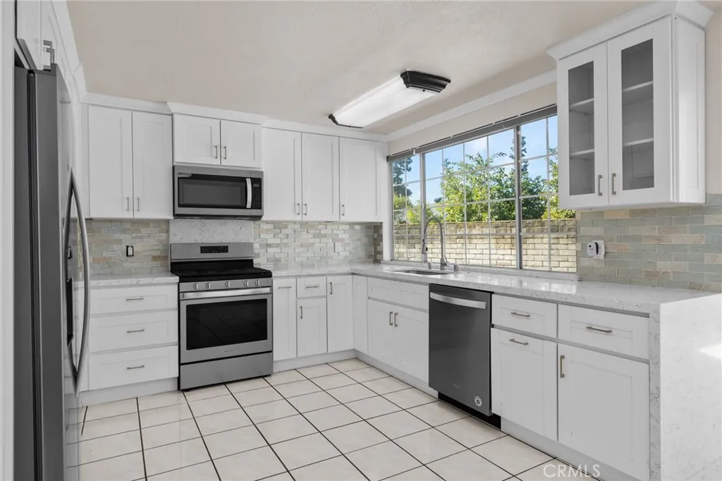 Discover the perfect blend of style, space, and comfort in this beautifully updated single-story 4-bedroom, 2-bath home with an additional den, ideally located on a quiet cul-de-sac. Freshly painted throughout, this home features elegant quartz countertops and tile flooring throughout, offering both modern style and easy maintenance. Designed for comfortable living, the functional floor plan includes a versatile den perfect for a home office, playroom, or flex space. Step outside to enjoy the expansive wrap-around backyard and side yard ideal for entertaining, gardening, or creating your own private retreat. The turf front yard provides year-round curb appeal with minimal upkeep. This move-in-ready home combines convenience, style, and space, all on one level.