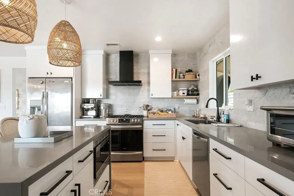 California Contemporary Masterpiece with Iconic 180° LA Views | Baldwin Hills Unmatched 180-degree panoramic views of Los Angeles, stretching from Downtown Los Angeles to Century City. From your living room, enjoy direct views of the legendary Hollywood Sign and Griffith Observatory — a daily reminder that you live in one of the most celebrated cities in the world. Completely remodeled with today’s discerning buyer in mind, this 3-bedroom, 2-bathroom residence (plus a dedicated office/den easily convertible to a 4th bedroom) blends sophisticated design with effortless indoor-outdoor living. Step inside to an open-concept floor plan drenched in natural light, wide-plank light hardwood floors, and designer finishes throughout. The chef’s kitchen is the centerpiece of the home, featuring custom white cabinetry, expansive quartz countertops, and a dramatic oversized island designed for gathering, entertaining, and everyday luxury. The primary suite is a true sanctuary, showcasing a stunning art-deco inspired bathroom renovation that feels bold, refined, and unforgettable. The backyard has been thoughtfully redesigned for elevated outdoor living, featuring a dedicated dining area for sunset dinners and a stylish outdoor living room perfect for entertaining under the city lights. Additional highlights include: - Brand-new landscaping front and back - Custom built-in feature wall in the living room - Designer Serena & Lily wallpaper in the hallway and primary bedroom - Serena & Lily kitchen chandelier and pendant lighting - Lulu and Georgia bedroom lighting Location is everything — and this home delivers. Just minutes from Los Angeles International Airport, SoFi Stadium, and the vibrant energy of Culver City, you’re perfectly positioned for convenience, culture, and connection. This is more than a home. It’s a statement. It’s a view. It’s a lifestyle.