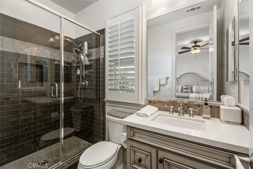 Panoramic ocean views overlooking the wetlands and ecological reserve make this spectacular residence a true gem in the prestigious Brightwater community. From the moment you enter, luxury and thoughtful design are evident at every turn. The main level offers an exceptional floor plan anchored by a stunning great room that showcases sweeping ocean views and flows seamlessly into the gourmet kitchen, complete with high-end appliances and designer finishes. Just off the living area, a state-of-the-art home theater creates the perfect space for movie nights and game days. A formal dining room, main-level “mini master” suite, and an office with ocean views complete the first floor. Full disappearing pocket doors open from the kitchen to the covered outdoor seating area with a fireplace and overhead heaters, creating a true indoor-outdoor living experience. The entertainer’s backyard features panoramic views, a heated "spool," outdoor kitchen, and a gated side yard ideal for pets. Upstairs, you’ll find a spacious loft, laundry room, and four en-suite bedrooms, including the magnificent primary suite. Enjoy breathtaking ocean views from both the bedroom and spa-inspired bath, complemented by an expansive custom closet. Additional highlights include whole-home surround sound, smart home technology, Lutron lighting, a hot water circulator, two tankless water heaters, water softener, home alarm system with security cameras, gun safe, and fully paid solar panels. The oversized three-car garage is equipped with custom cabinetry and storage racks. Located just minutes from the beach and offering views for miles in one of Huntington Beach's most coveted neighborhoods, this is a truly exceptional home you won’t want to miss.