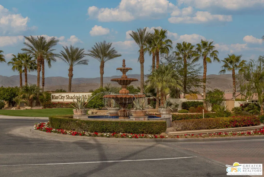 Beautiful Avalino model currently available in Sun City Shadow Hills! This 2BD/2BA + den home offers an open layout, private yard, and resort-style 55+ living, positioned for a quick sale. Located in the highly sought-after Sun City Shadow Hills community, this popular Avalino model features an open floor plan with tile flooring, high ceilings, and abundant natural light throughout the main living areas. The kitchen includes granite countertops, rich cabinetry, stainless steel appliances, double ovens, and a spacious breakfast bar that flows seamlessly into the dining and great room, ideal for everyday living and entertaining. The primary suite offers dual vanities and a walk-in shower, while the guest bedroom and bath provide privacy for visitors. The versatile den is perfect for a home office or hobby space. Enjoy a private landscaped backyard with an extended covered patio ideal for outdoor dining and relaxing desert evenings. Additional highlights include a garage split A/C system for flexible workspace or climate-controlled storage. Residents enjoy golf, pools, fitness centers, pickleball, tennis, clubhouses, dining, and an active lifestyle. Do not miss viewing this property!
