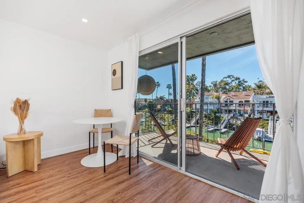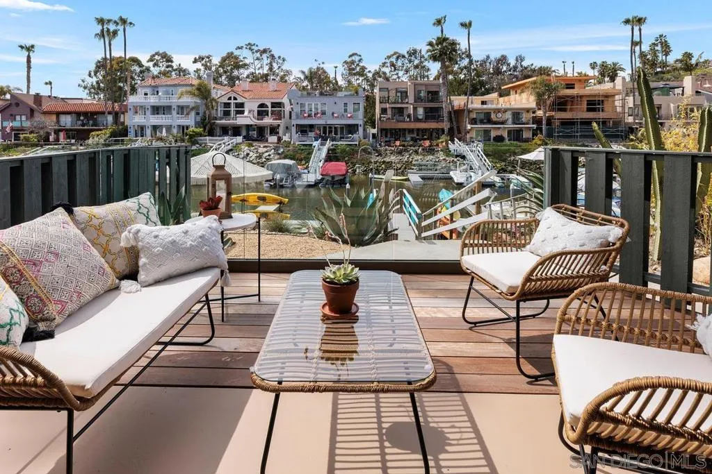 A rare opportunity on the waterfront of the Carlsbad Lagoon - a fully renovated Mid-Century 4-plex with a private boat dock in one of Carlsbad’s most peaceful coastal settings, featuring three 1-bedroom/1-bath residences and one 2-bedroom/1-bath residence, each with private patios and balconies. Each unit captures direct water views and offers private outdoor space, blending seamless indoor-outdoor living just steps from the lagoon beach and minutes to Carlsbad Village. Interiors are thoughtfully updated with custom teak cabinetry, quartz countertops, Italian porcelain tile, high-end appliances, reinforced balconies, and IPE wood decking. Fully furnished and turnkey, the property includes a private gated-entry unit ideal for an owner-user. Zoned for 30+ day rentals with potential to add two units above the garage, this is a distinctive waterfront investment with lifestyle appeal and long-term upside.