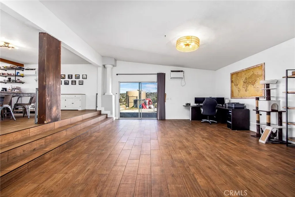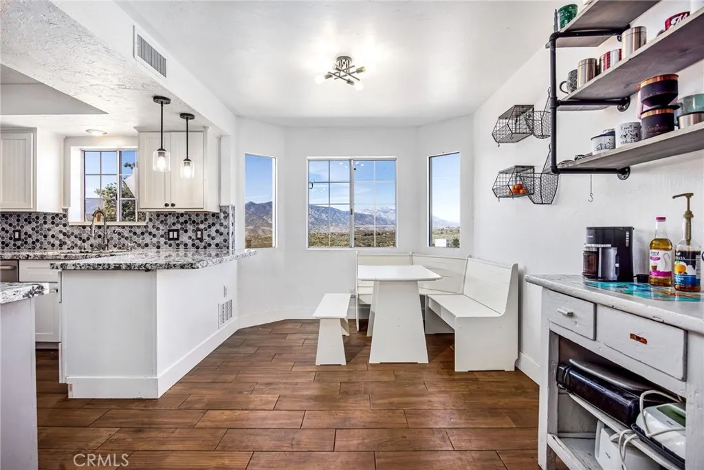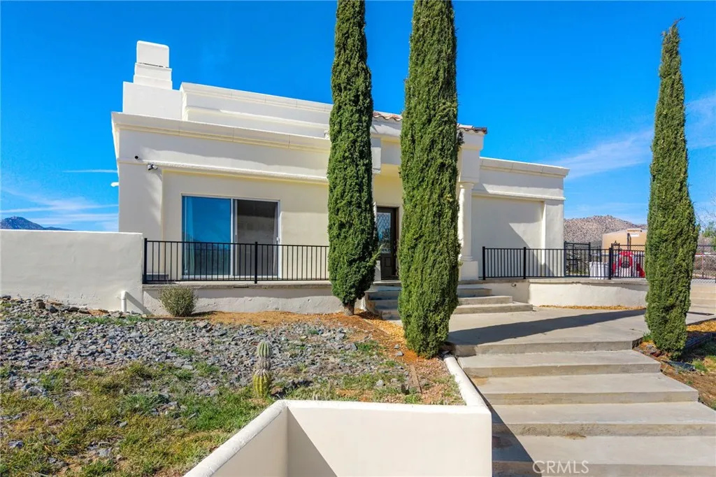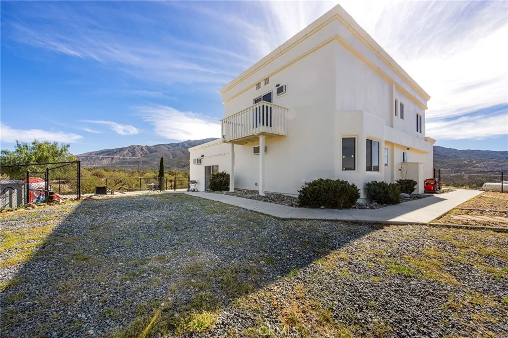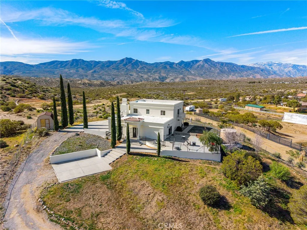 Perched on a scenic hill with sweeping views in every direction, this inviting home offers privacy, comfort, and the kind of space that lets you truly enjoy mountain living. Freshly painted and thoughtfully improved, the home welcomes you with a bright open floor plan centered around a cozy fireplace that naturally brings everyone together for relaxing evenings or easy entertaining. Tile flooring throughout the downstairs adds a clean, durable touch while helping the living spaces feel open. The kitchen has been nicely updated with new cabinetry and backsplash, giving it a fresh look while still being practical for everyday cooking and gathering. Upstairs you will find three bedrooms, including a primary suite with its own private deck, the perfect spot to sip your morning coffee, watch the sunrise, or unwind while the sky turns colors at sunset. Step outside and you will find fully fenced grounds with a new gate, two storage sheds, and plenty of room to spread out. Whether you envision animals, hobbies, gardening, or simply enjoying the extra space, there is room here to make it your own. The home runs on a private well with storage tank, and thoughtful features like a generator hookup, EV charger, and spacious two car garage provide extra convenience and peace of mind. The garage also includes a deep freezer and dishwasher. With expansive views, usable land, and plenty of flexibility to create the lifestyle you want, this hilltop property offers a comfortable and peaceful place to call home. Conveniently located only 20 mins away from Palm Desert.