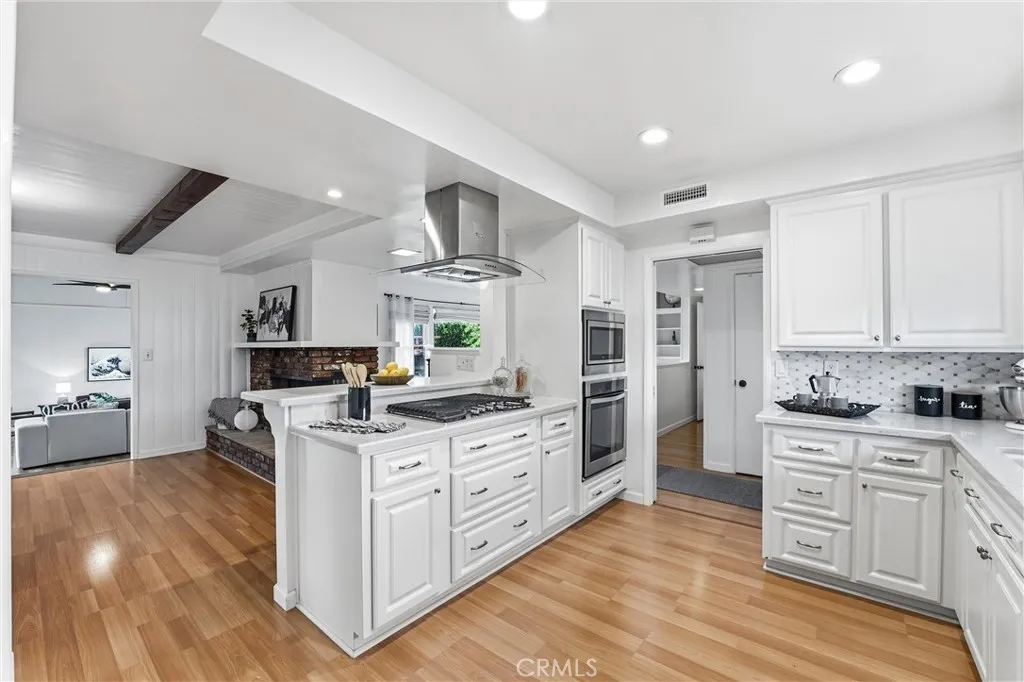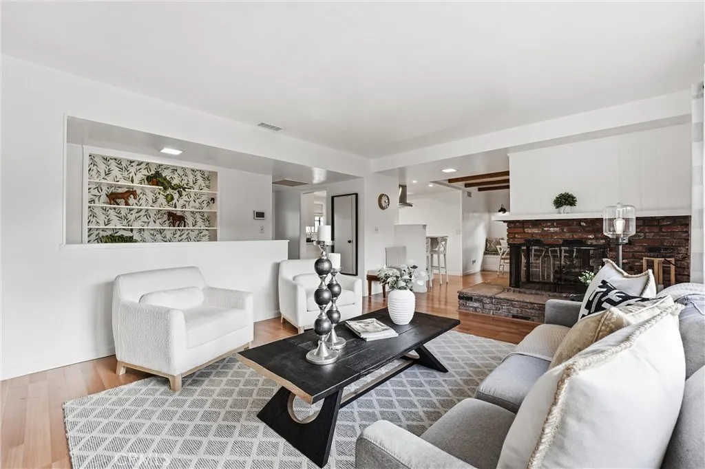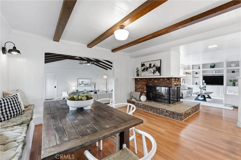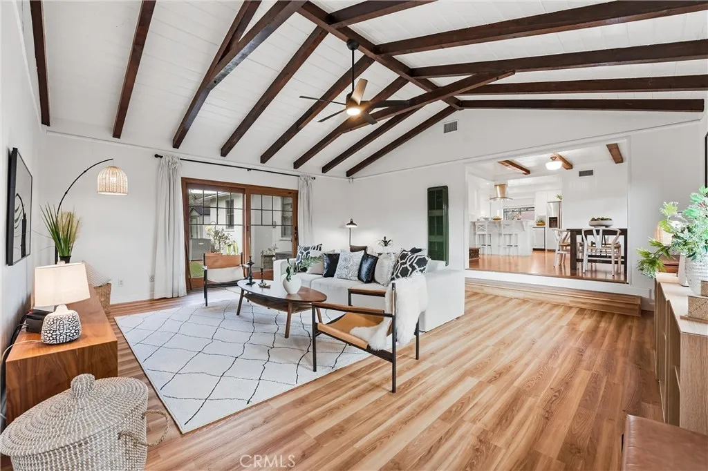 This home is stunning with a unique open floor plan. Kitchen is bright and open to both living room and large family room. Family room has a vaulted ceiling and wood beams. There is a beautiful double sided fireplace that opens to the living room and dining room. Property has lots of windows and a large slider which allows for a lot of natural light. Two full bathrooms with a third powder bathroom off the kitchen. Home has been well maintained with repairs to the Major cost items. New Roof, New HVAC with all new ducting, new garage door with opener, new water heater. Home has been painted and the garage has been drywalled all upgrades within the last 5 years. Yard is beautifully landscaped with RV Parking and it is peaceful and spacious. Conveniently located in east Anaheim with easy access to shopping and Honda center.