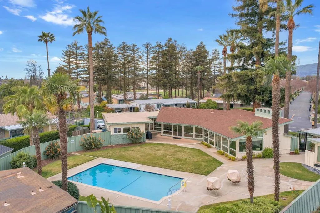 Located within a desirable 55+ senior community, this 1977 Lancer Royal Knight, 24' x 52' double-wide mobile home offers approximately 1,248 square feet of comfortable living space, featuring 2 bedrooms, 2 full bathrooms, and a versatile bonus room. The additional space can easily serve as a home office, study, gym, craft room, or flex area to fit your lifestyle needs. Designed with a spacious and functional layout, the home features generous living and dining areas ideal for everyday living and easy entertaining. Large windows provide abundant natural light, creating a warm and inviting atmosphere throughout. The kitchen offers ample cabinetry and storage for added convenience. The primary suite includes a private bathroom for comfort and privacy, while the second bedroom and full bath provide flexibility for guests. Outside, youll find a decent-sized backyard, a covered porch perfect for relaxing, and a storage shed for added functionality. With a monthly space rent of $963.28, this home presents an excellent opportunity for affordable living in San Jose. Conveniently located near shopping, dining, and major commuter routes, it offers both accessibility and value within a well-established senior community. A wonderful opportunity to personalize and make this home your own.